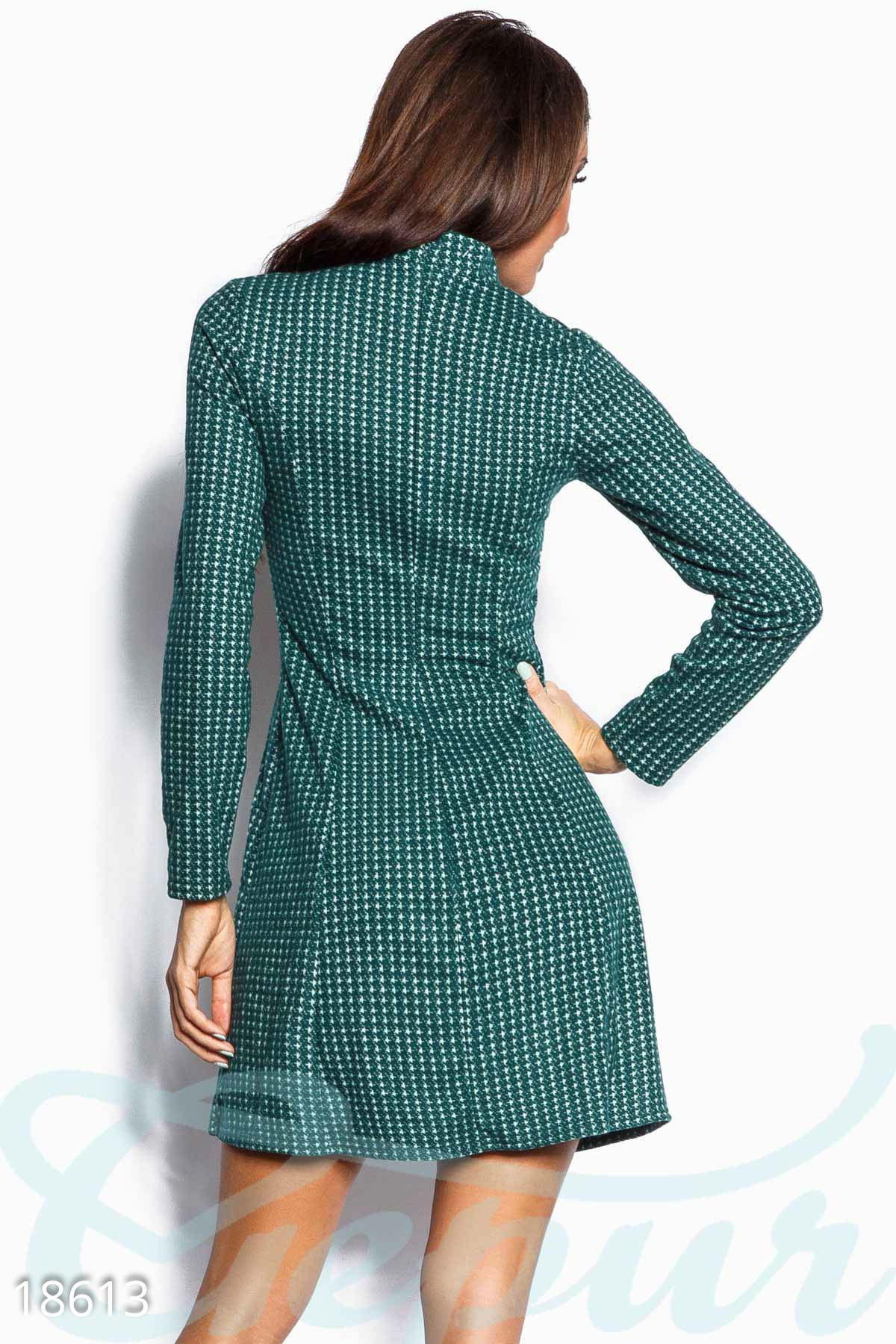 В пору холодов и бесконечного серого неба вам станет теплей и уютней от этого стильного платья. Изготовленного из очень мягкой ворсистой ткани, которая украшена принтом в мелкую «лапку». С удобным воротником-стойкой и длинным теплым рукавом. И с расклешенным женственным кроем, который позволит выделить талию.