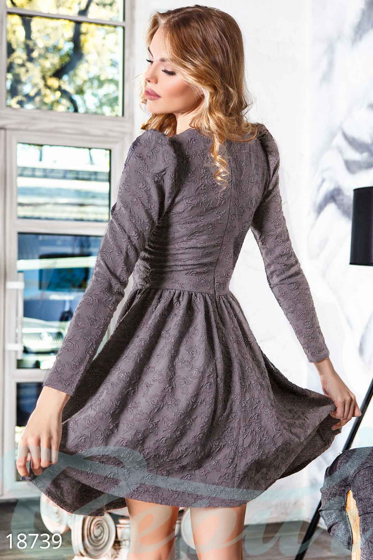 Вы будете удивлены тем, как это платье преобразит ваш образ! Благодаря расклешенному крою, оно заметно выделит талию, а с помощью длинных рукавов и складок по окату – обозначит хрупкие плечи. Дополнит образ эксклюзивная нотка от наших дизайнеров, выполненная в виде броши на втачном поясе.