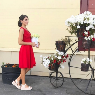 Платье пришло чуть темнее, чем на фото, но я не разочаровалась! Правда размер спереди пришлось немного зашить, так как ну очень уж все откровенно выглядит! На размер 44, заказывала М. Но ткань хорошо тянется. Вообщем покупкой очень довольно.
