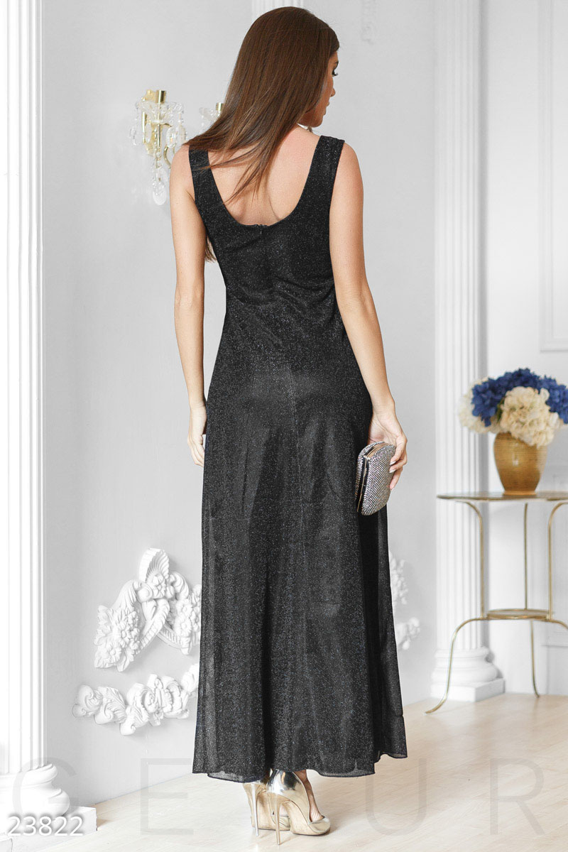 Идеальное вечернее черное платье! Ткань красиво переливается, с люрексом. Садится по фигуре. Соответствует размерной сетке, ска на 42-44 отлично села, длину придется немного убрать на рост 167 см.