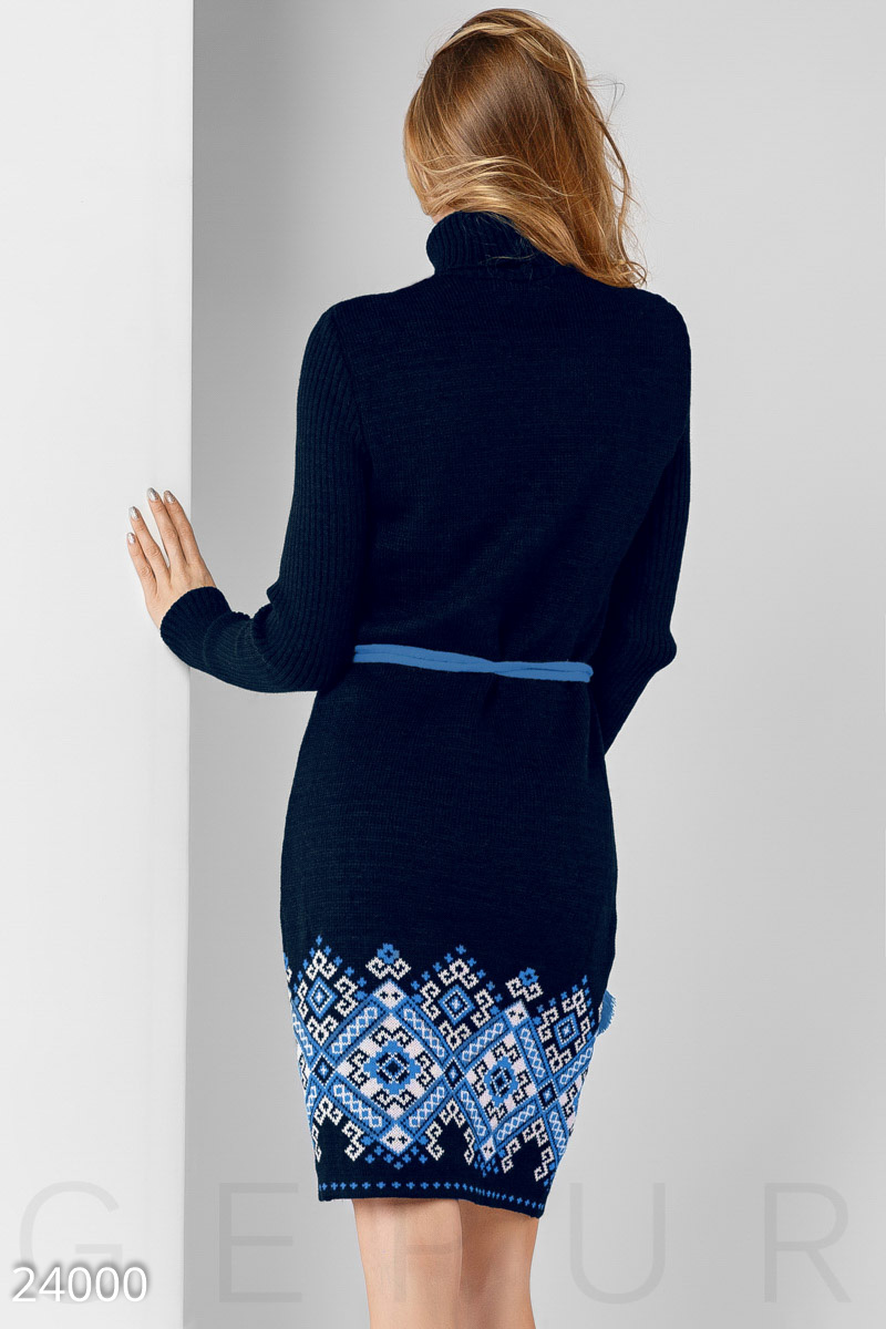 Платье очень теплое, с ярким этно-арнаментом. Длина почти до колена на рост 167 см. Зимой точно не замерзнете в нем) Качество вязки плотное, понравилось.