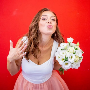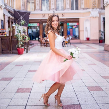Клиентка заказывала платье для фотосессии, село отлично по размеру. Юбка такого же нежно-розового цвета. Фатин жестковат, но за счет этого отлично держит форму. Материал верха очень деликатный, надевайте аккуратно, можно сделать зацепки.