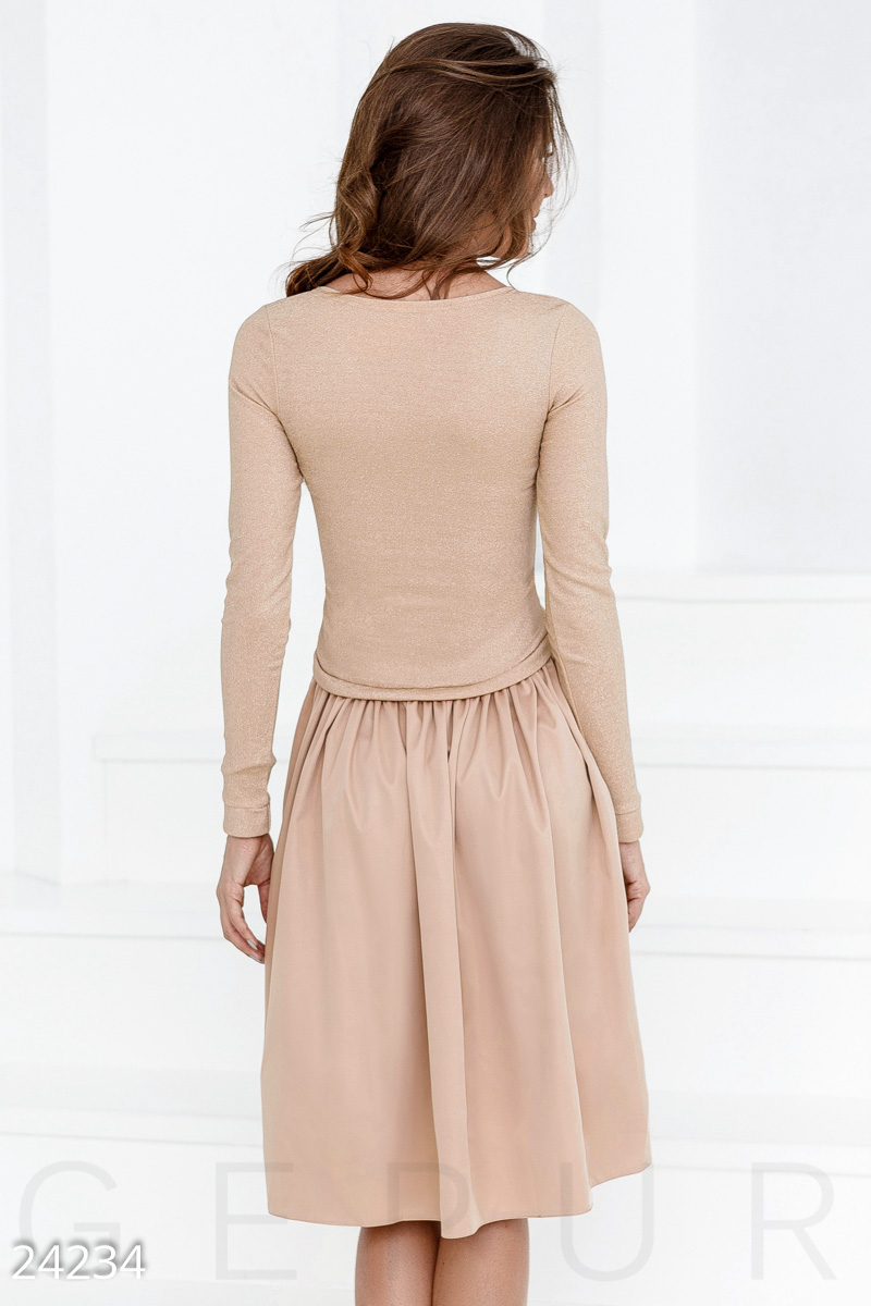 Красивое платье, клиентке брала м-ку на 42-44, село отлично. Верх из трикотажа, с нитью люрекса, низ-плотная плопковая ткань, держит форму. Цвет соответствует.