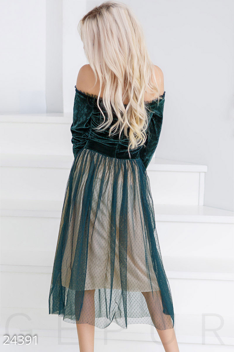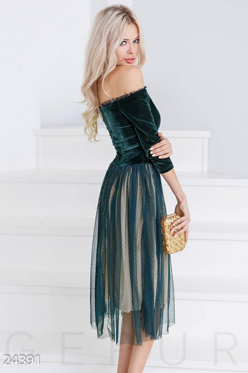Платье нереально красивое!! Когда увидела его на фото, сразу влюбилась в него! В итоге не прогадала, модель просто офигенская! Изумрудный бархат отличного качества в сочетании с нежной сеточкой и нюдовым подкладом - это мечта! Эффектная рюшечка по...Детальнее