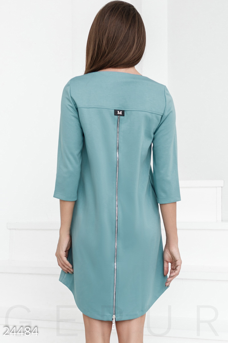 Лаконичное платье-клеш из мягкого трикотажного полотна: свободный рукав 3/4, удлиненный подол, два скрытых кармана в швах и металлическая молния по всей длине спинки.