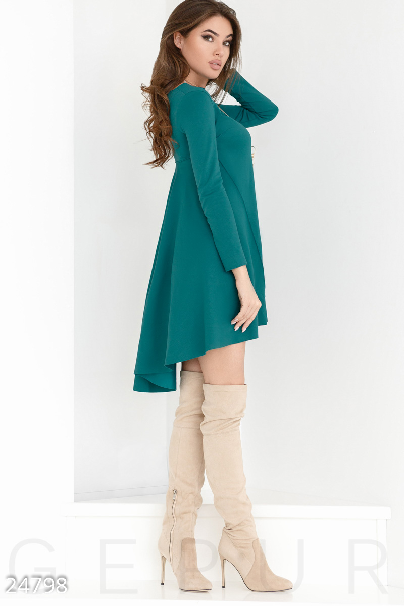 Просто обводнённое платье! Я в восторге. Сзади удлинено немного, что придаёт изящность платью) на ОГ 90 ОТ 74 ОБ 104 взяла М, село супер! Кстати платье идёт как на фото с бижутерией , порадовало, классно смотрится) очень довольна!