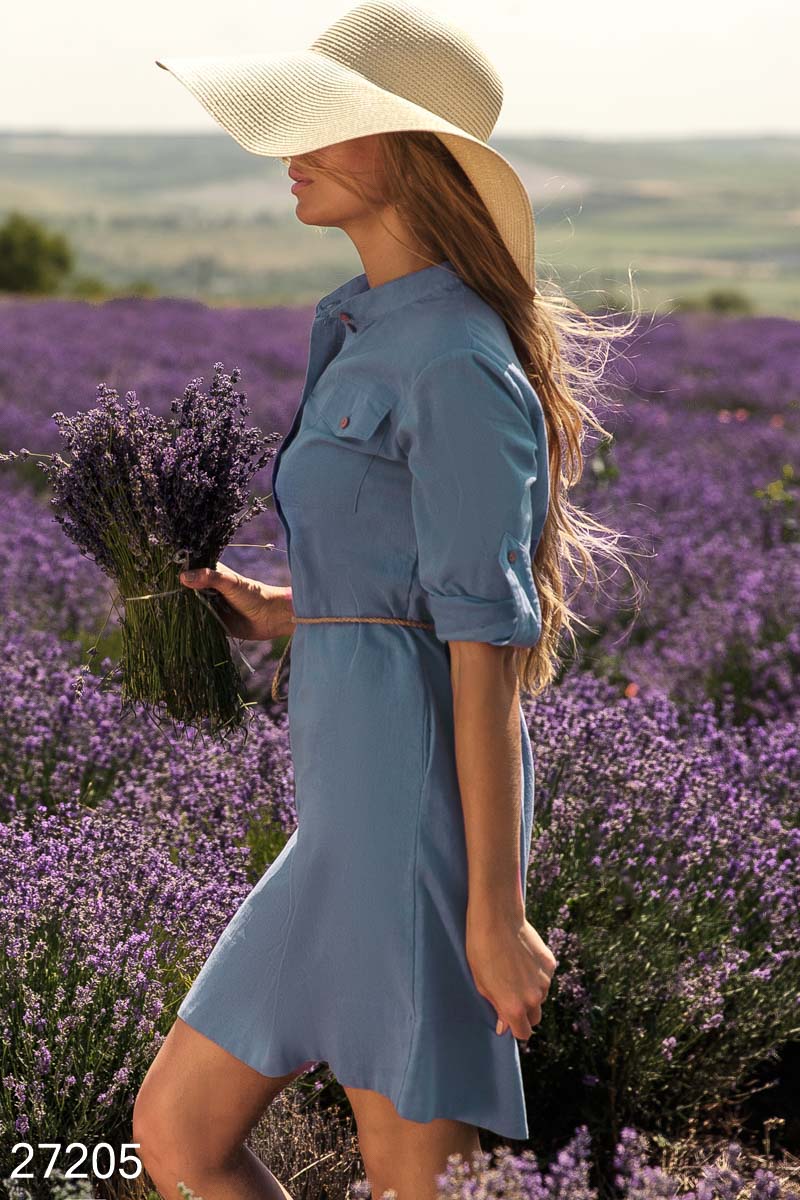показалось по фото, что платье джинсового цвета, нет это не так, цвет сине-голубой, очень красивый. на ог 92 размер С сел как родной. после стирки чуть село, но не критично, не полиняло.