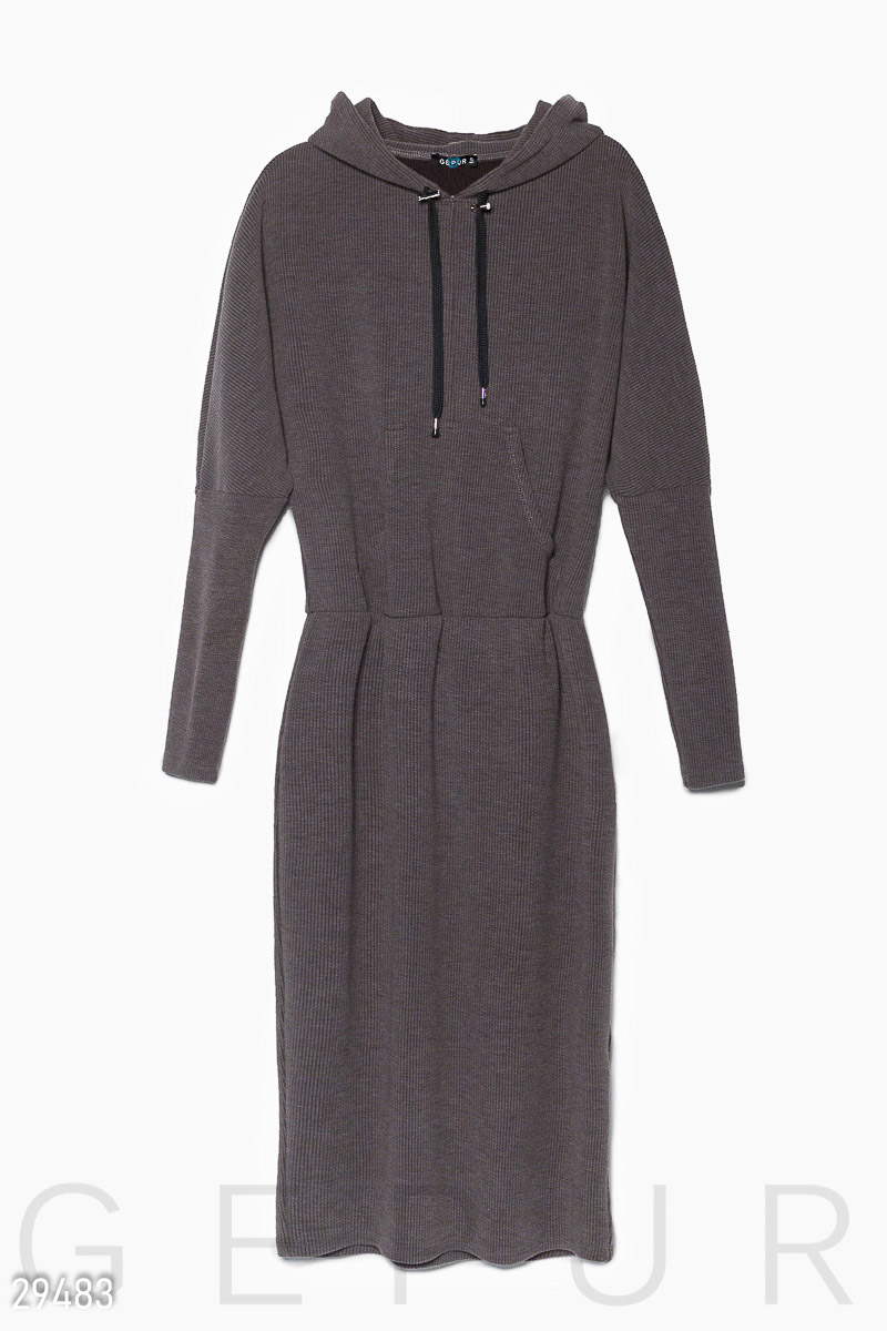 Трендовое платье от дизайнеров Gepur: капюшон на завязках, цельнокроеный рукав с широкой манжетой, вместительный карман-кенгуру спереди, эластичная вставка на поясе и облегающая юбка.