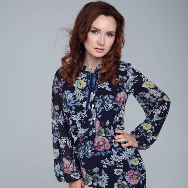 Красивое платье! Пришел именно такой расцветки, как на фото. Отличие от "актуального цветочного платья" - пошив идет облегающий по бедрам. Актуальное платье в бедрах свободней. То есть это платье лучше брать на размер больше, кто любит не в обтяг.