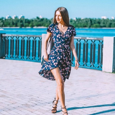 Платьем на запах очень довольна! Подчеркивает грудь, ноги, сексуальный вырез. На параметры 83-63-90 брала размер S, не короткое на рост 170, длина чуть выше колена