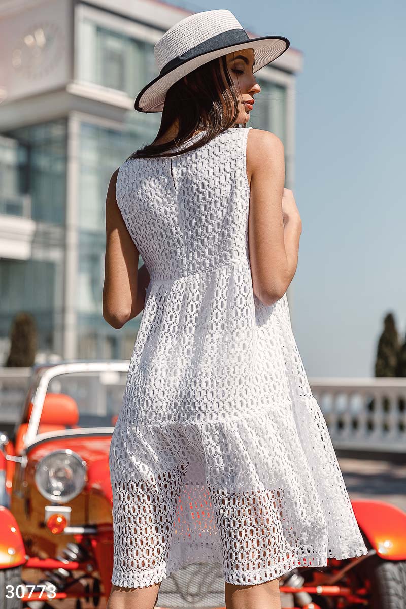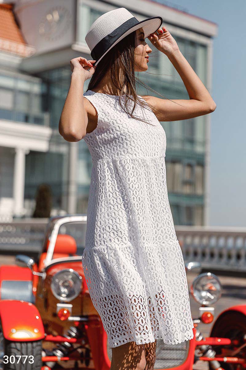 Платье не такое, как на модели. В белом цвете и в синем цвете отличается ткань кардинально. Ткань такая, как на картинке с платьем,без модели.