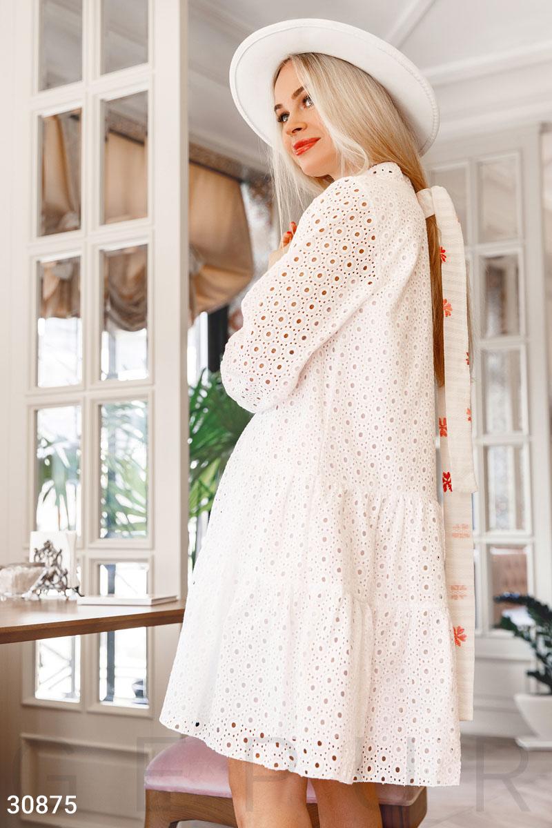 Отличное летнее платье! По размеру на 44-46, очень хорошо смотрится. Лёгкое, приятное, юбка с подкладом. Брала на фотосессию и не разочаровалась. Спасибо, Gepur