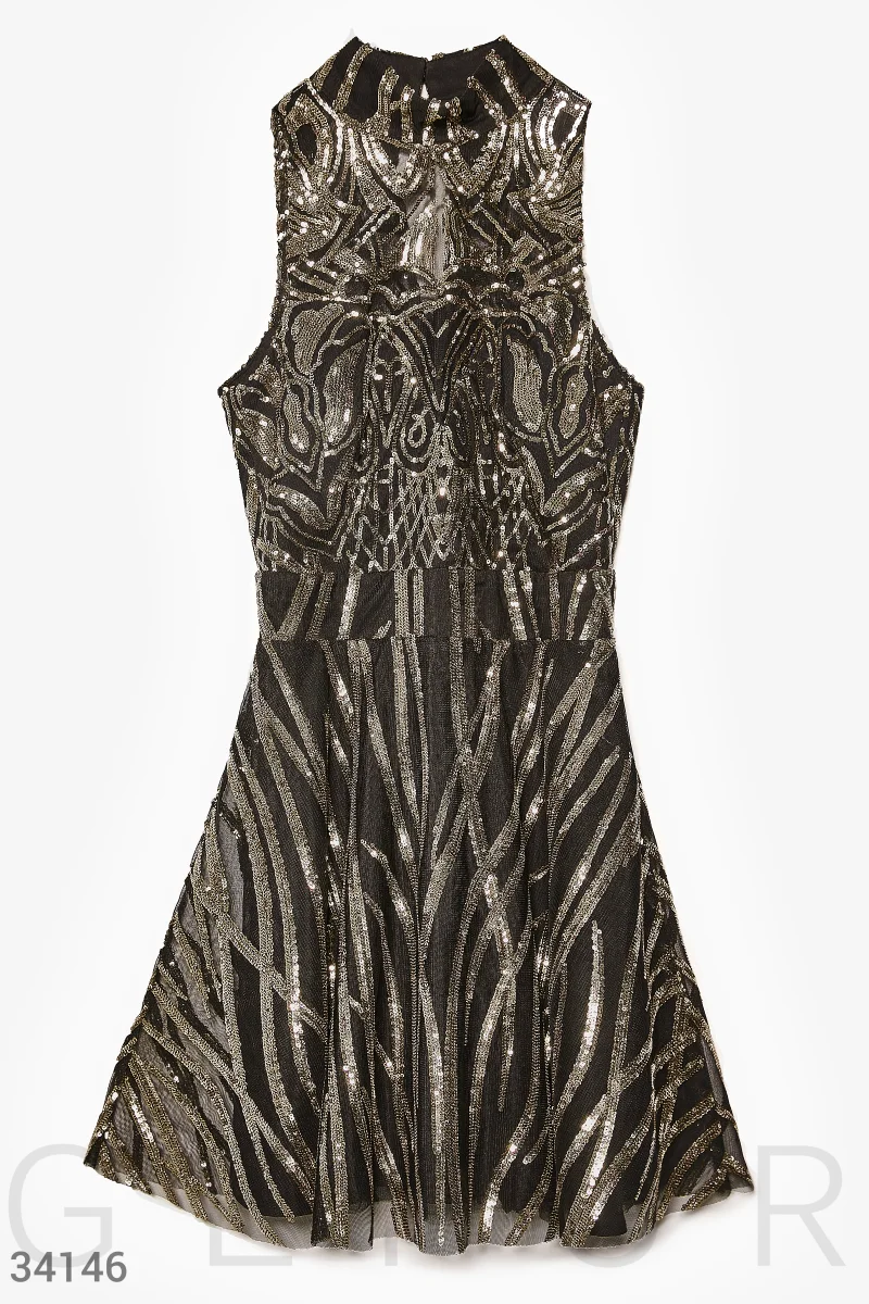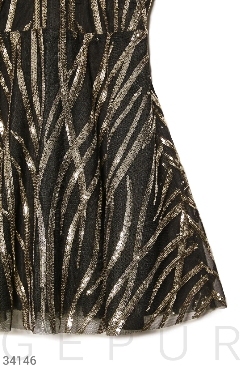 Выигрышная комбинация кроя и материала с пайеточными частицами – то, что нужно для достижения wow-эффекта. Модель угольно-черного цвета из осенне-зимней коллекции 2019 года дизайнеры Gepur украсили сверкающим однотонным напылением. Утонченное платье дополнено нежным шелковым подкладом.
