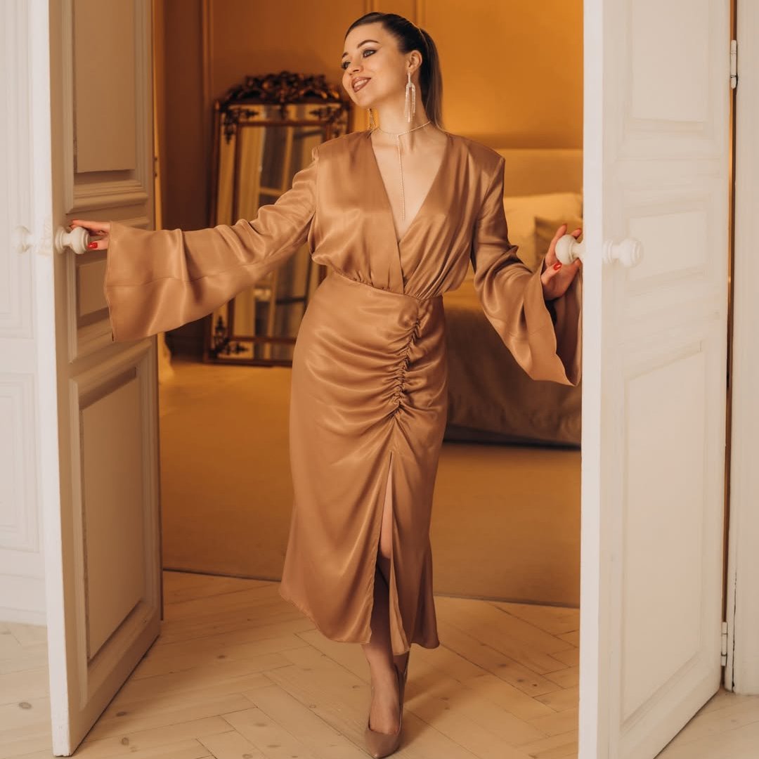 Я придбала цю сукню, і вона перевершила всі мої очікування! Бежевий колір виглядає дуже елегантно, а тканина приємна на дотик. Дуже задоволена покупкою та сервісом. Рекомендую! ❤️ ❤️ ❤️