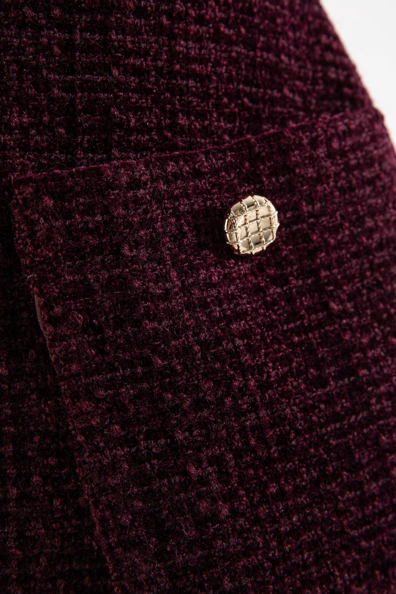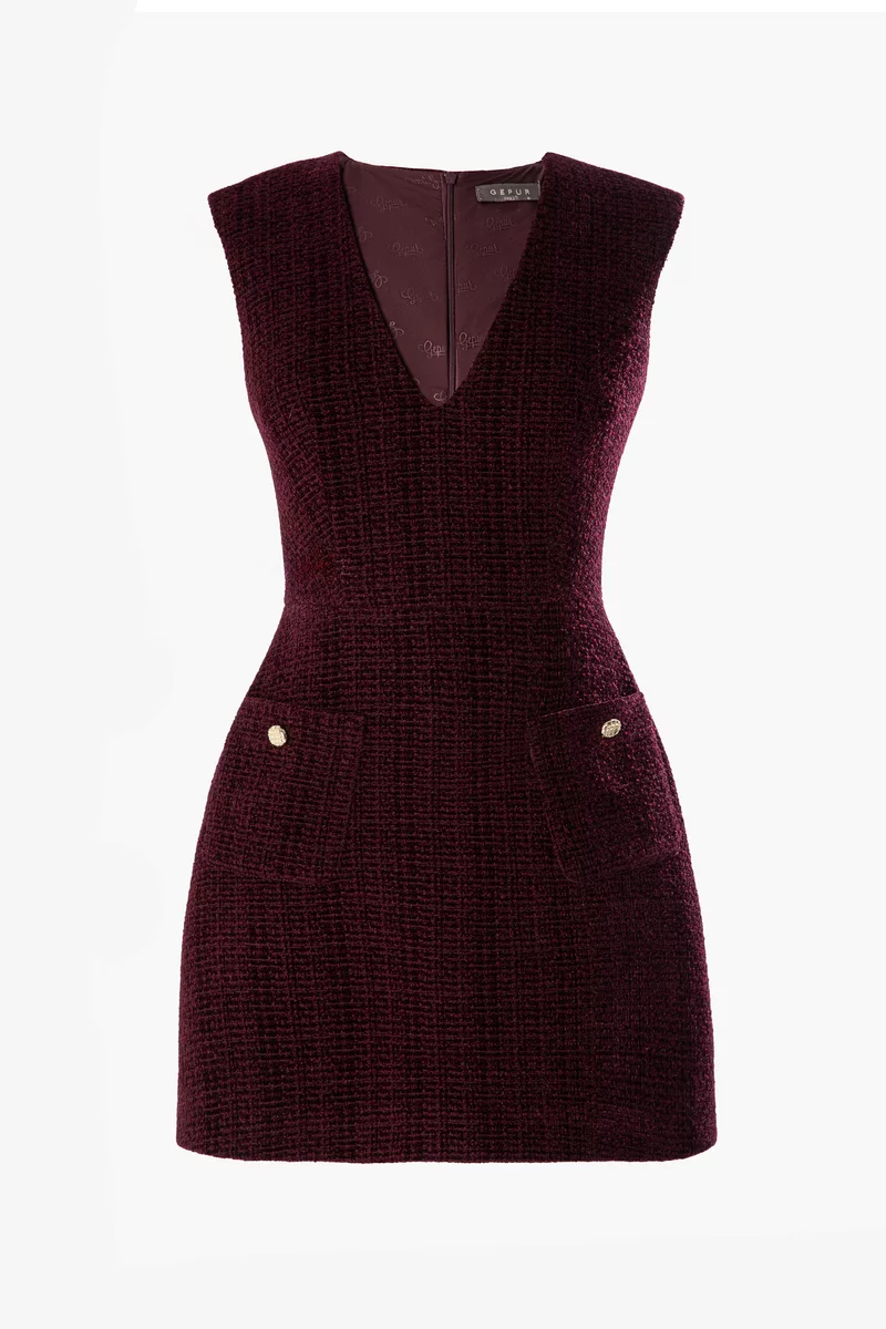 Твидовое платье-сарафан мини с добавлением шерсти в винном оттенке