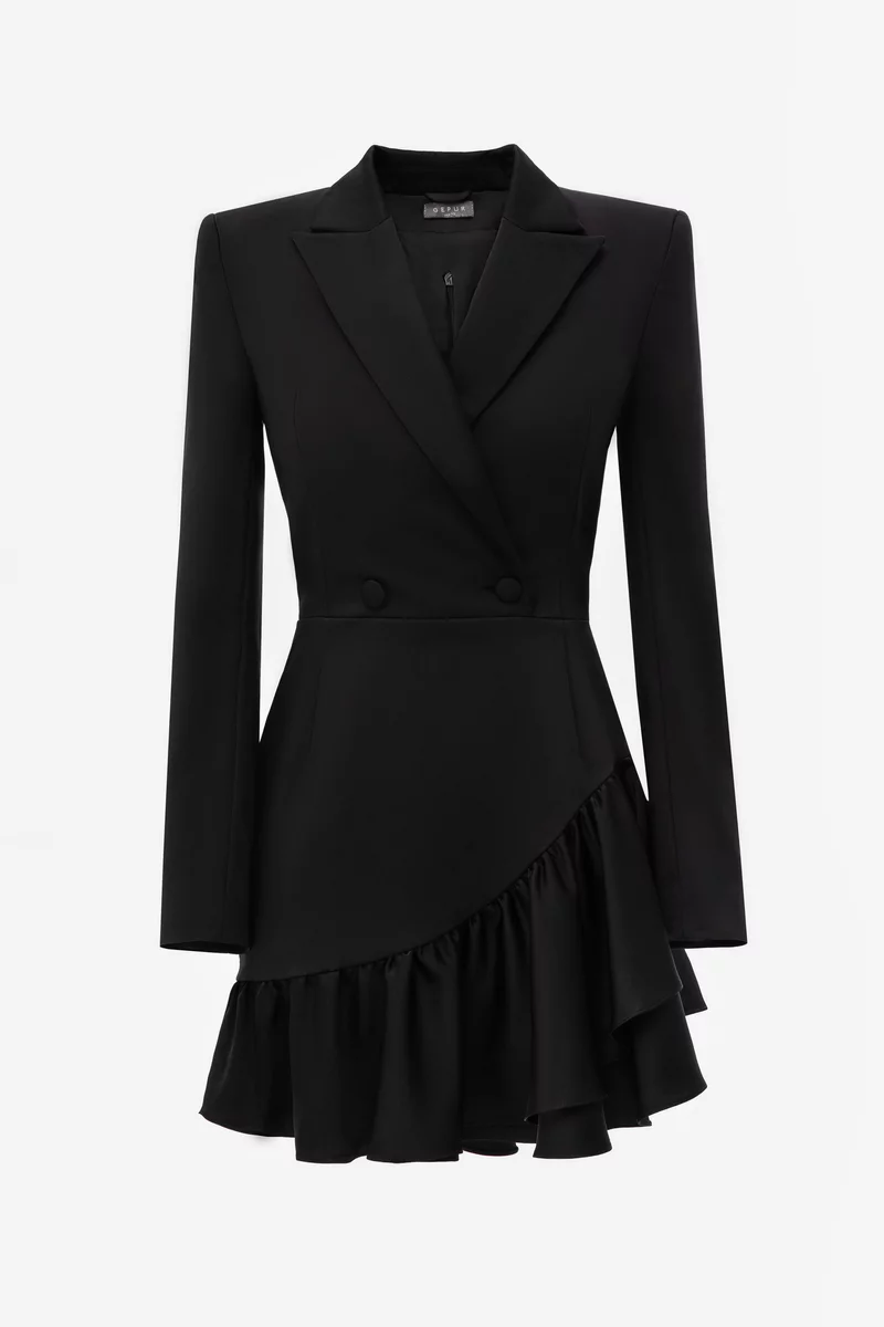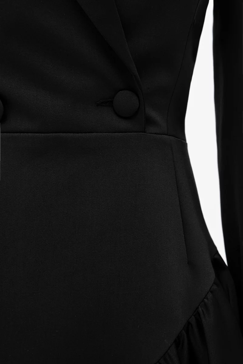 Платье мини из приятной к телу костюмной ткани, хорошо держащей форму. Акцентный вырез, подчеркнутая высокая талия и расклешенный крой юбки моделируют изящный силуэт. На подкладке. Застёгивается на скрытую молнию сзади