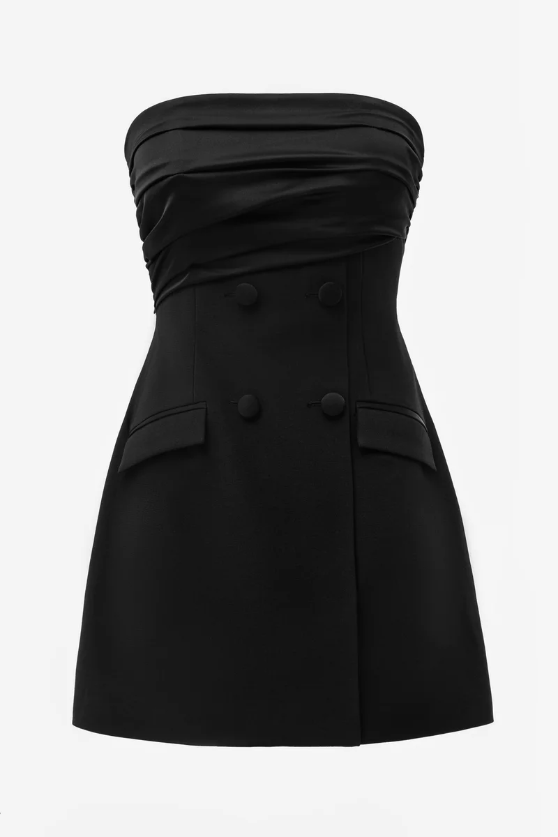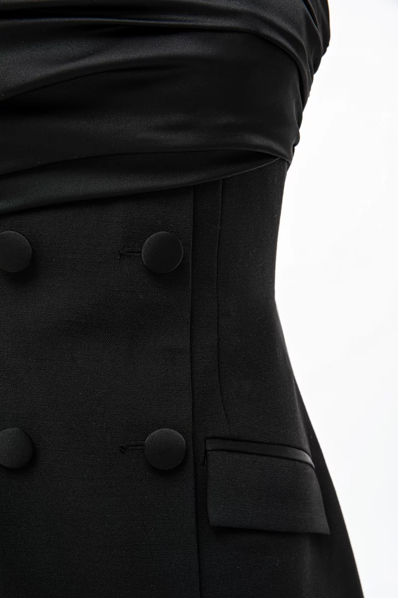 Платье мини с акцентным лифом с драпировкой. Подчеркнутая талия. Застёгивается на скрытую змейку сзади. На подкладке