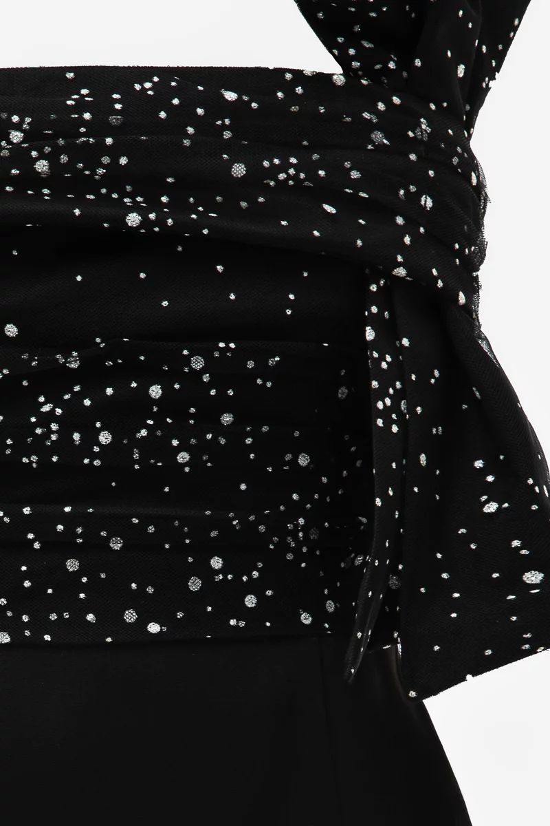 Изделие украшено оригинальным напылением, создающим эффект мерцающего шлейфа Gepur: излишки напыления немного осыпаются, оставляя за собой легкий звездный след