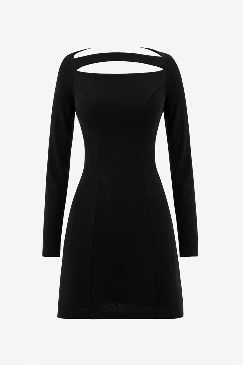 Черное платье мини с акцентным вырезом