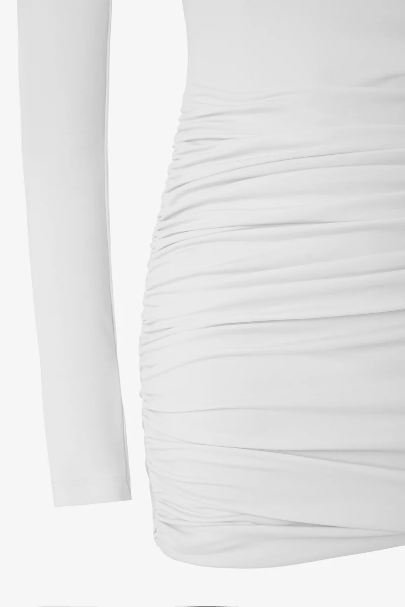 Молочное трикотажное платье мини с открытой спиной