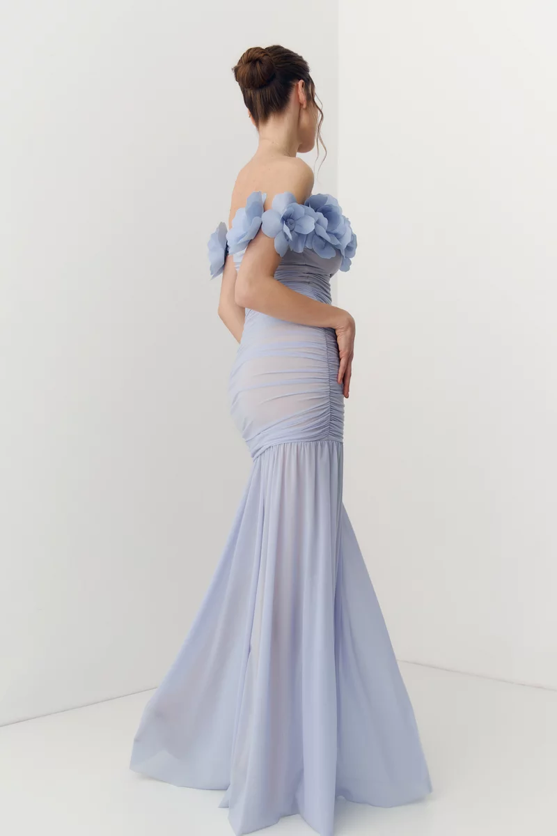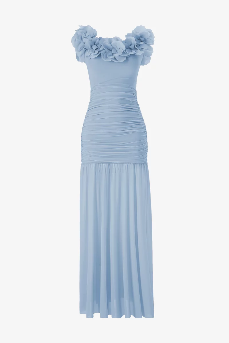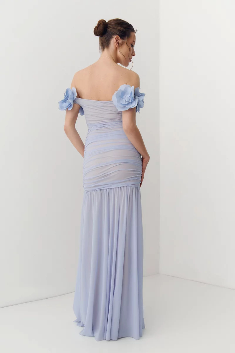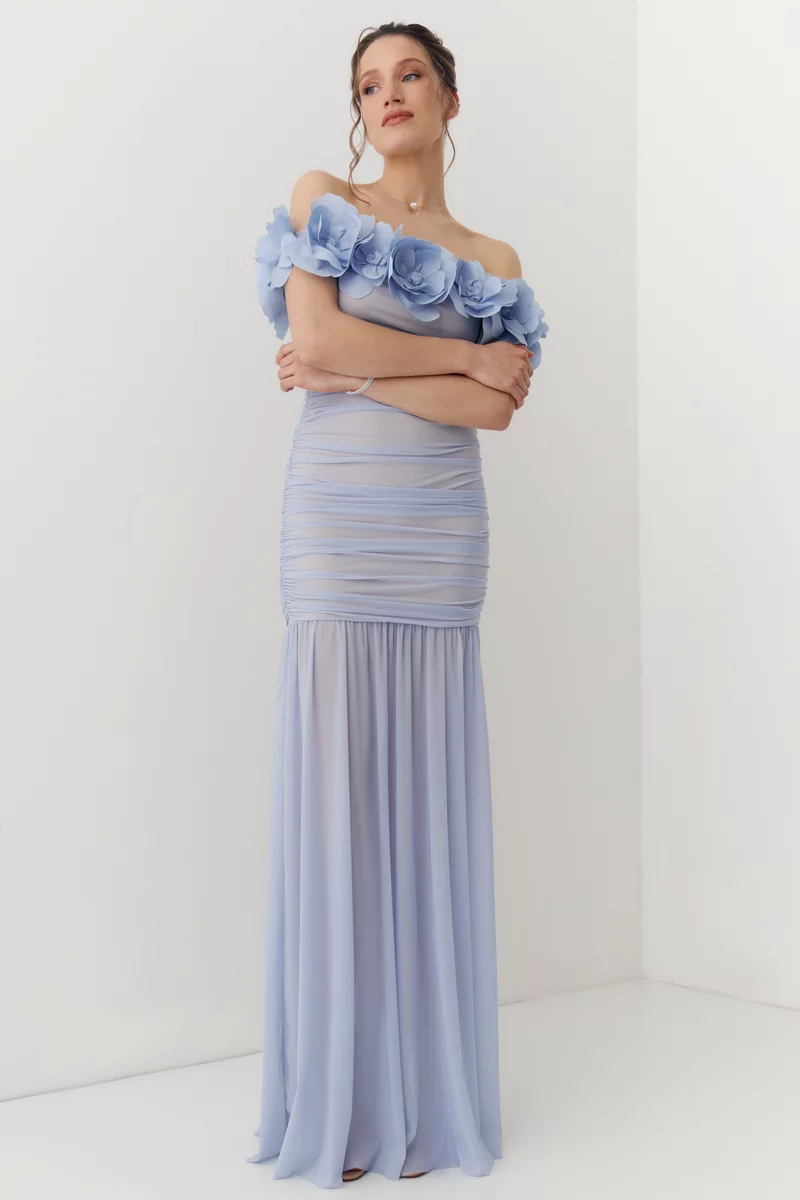 Облегающее платье макси из эластичной стрейч-сетки, идеально подчеркивающее силуэт и приятное телу. Модель с акцентными цветами и драпировкой. Дополнит твои смелые образы и подчеркнет индивидуальность. На подкладке