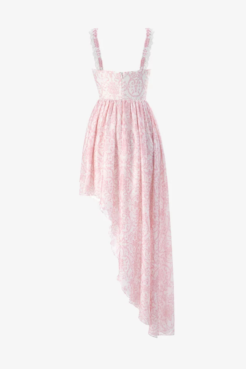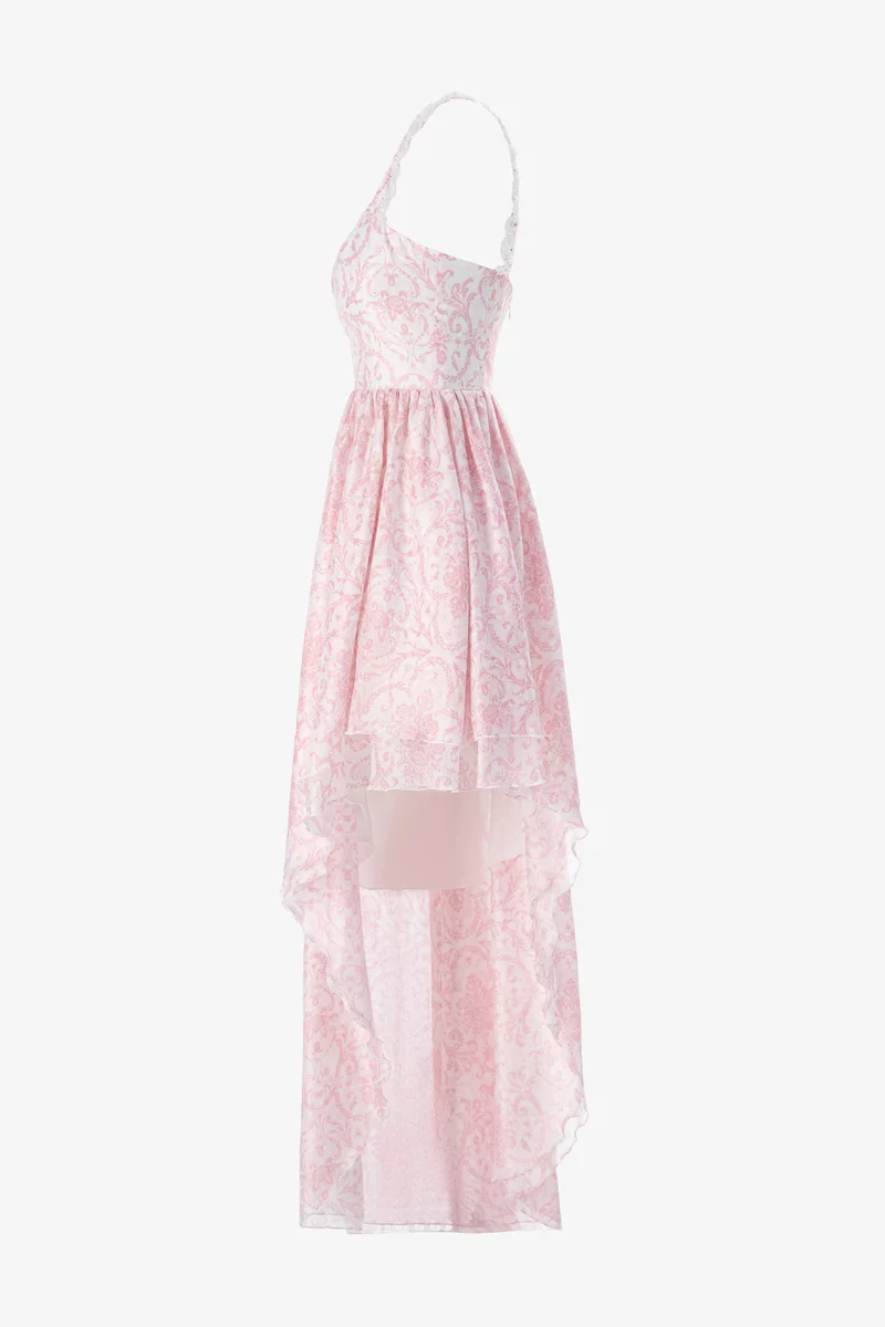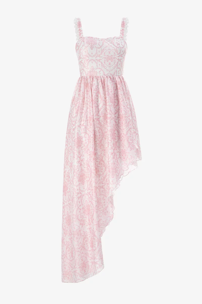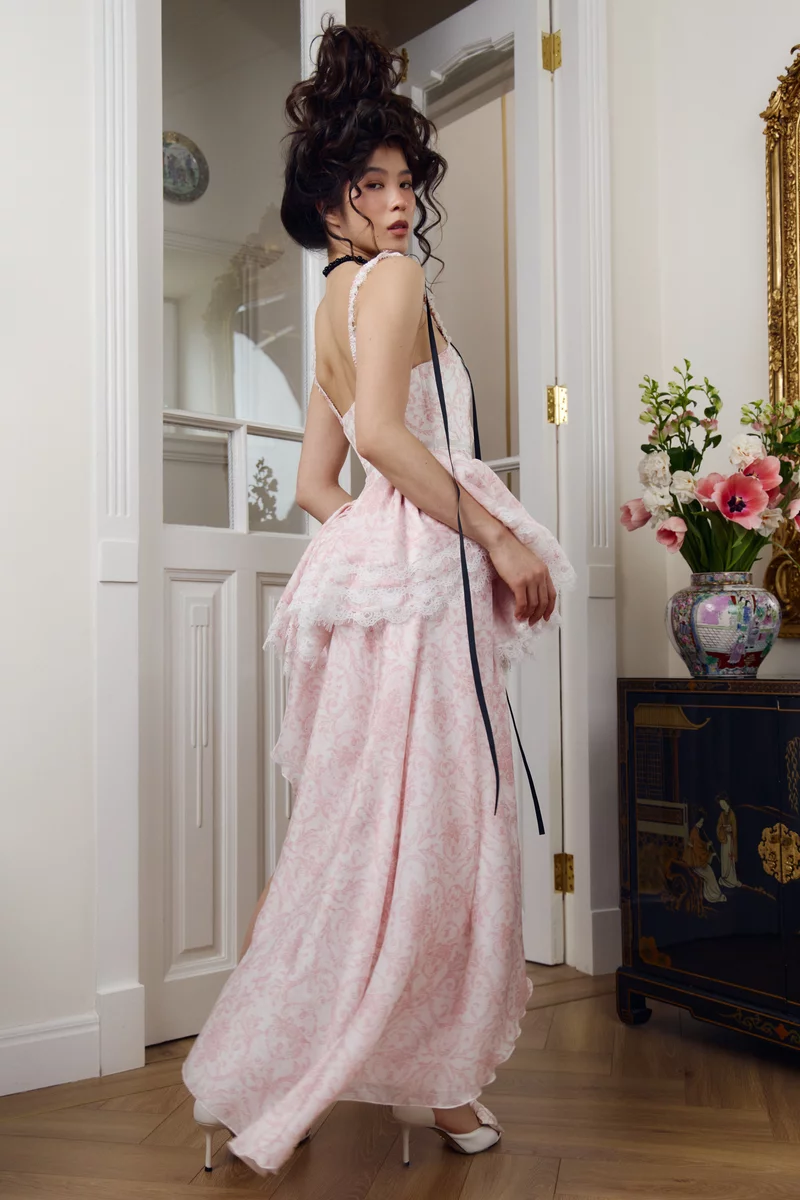 Благородство и легкая драматичность, имя сестры королевы Élisabeth в каждой складке платья. Модель выполнена из органзы. Высокая талия, асимметричный крой юбки и бретели с кружевом – здесь чувствуется любовь к красивым деталям. Застёгивается на скрытую молнию на спинке. На подкладке