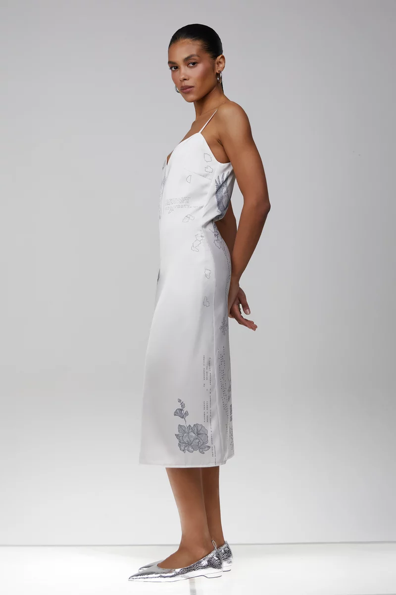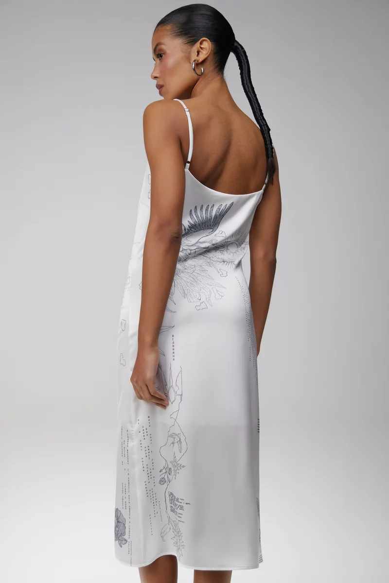 Соблазнительное платье-комбинация с небольшим v-образным вырезом и тонкими регулируемыми бретелями. Модель выполнили из искусственного шелка