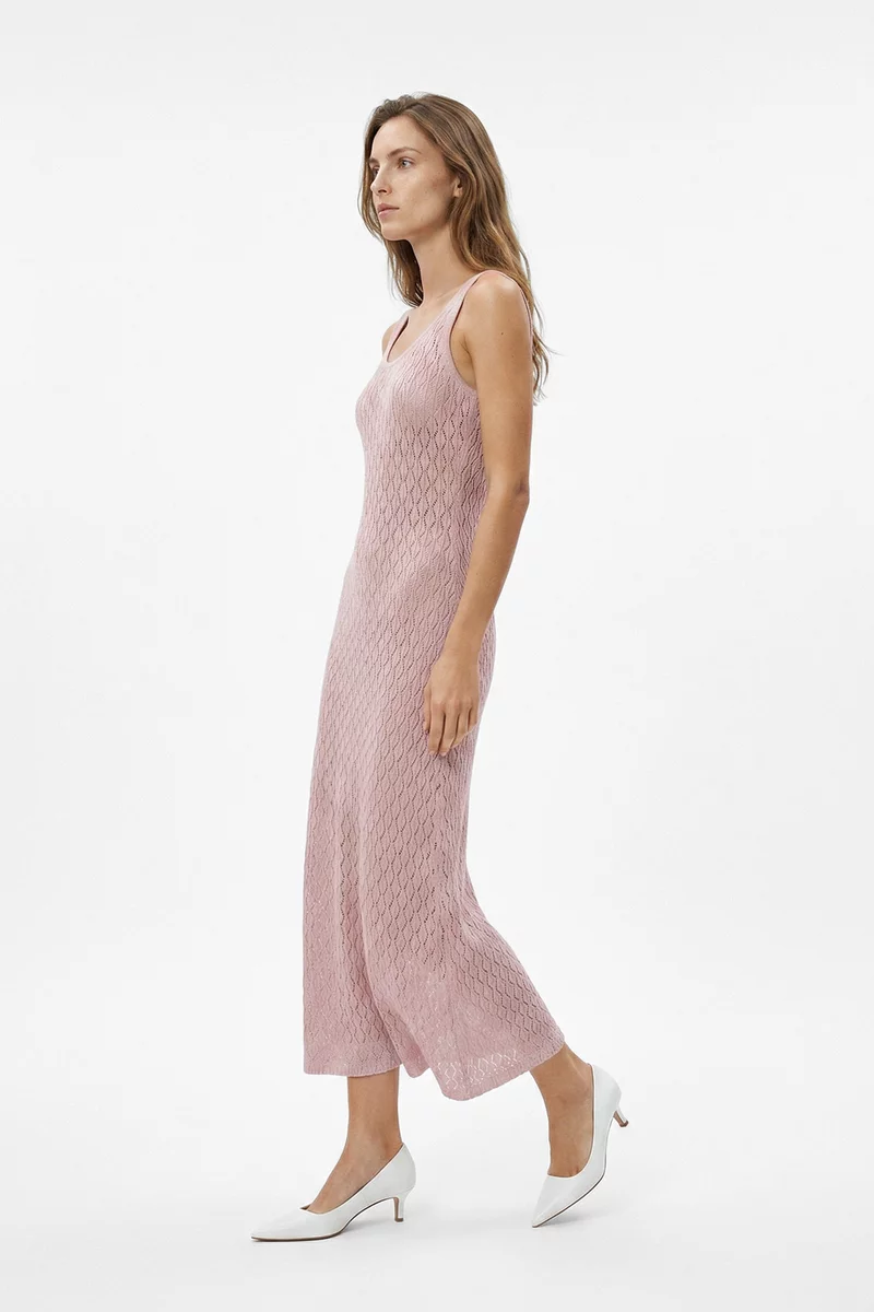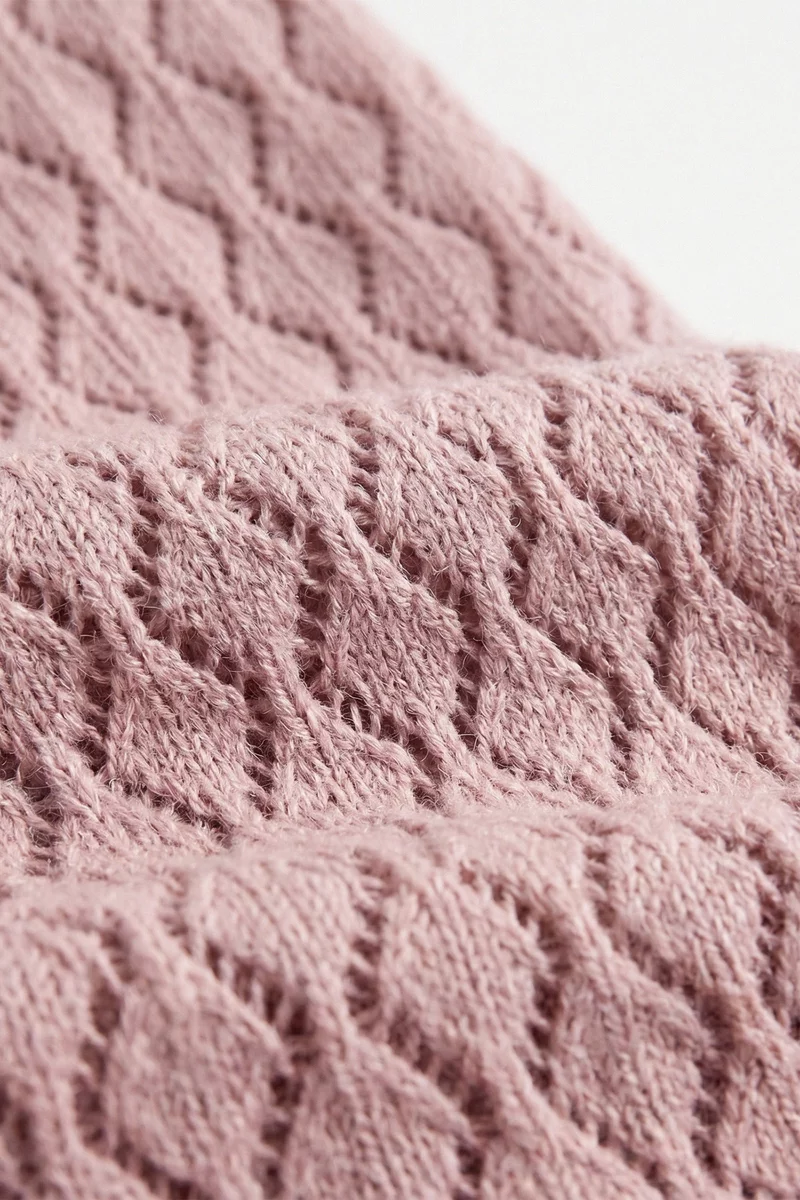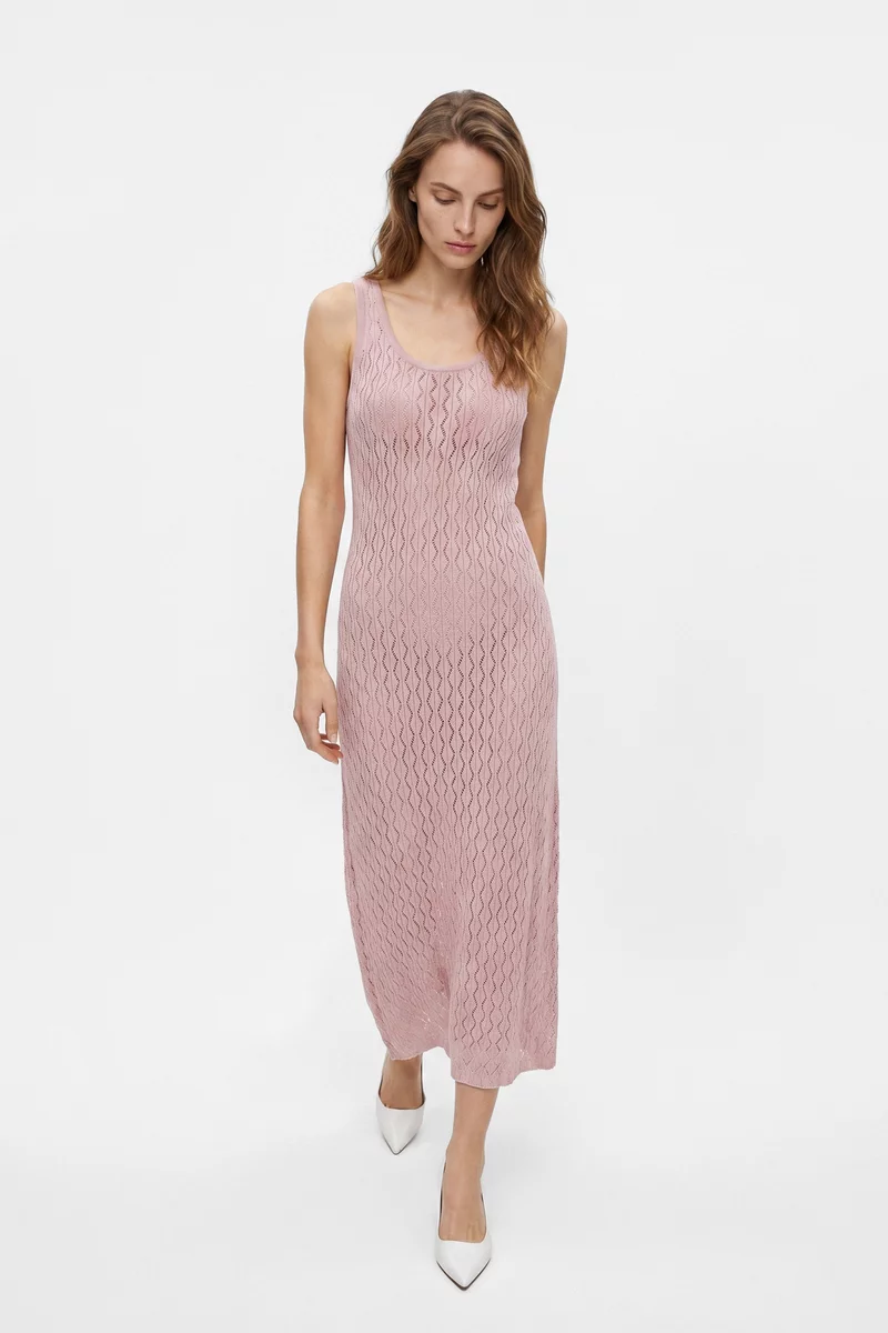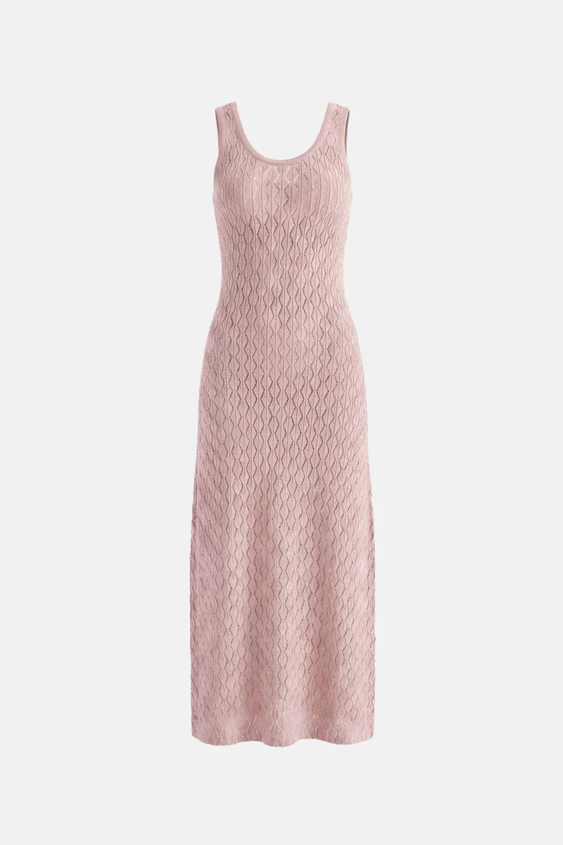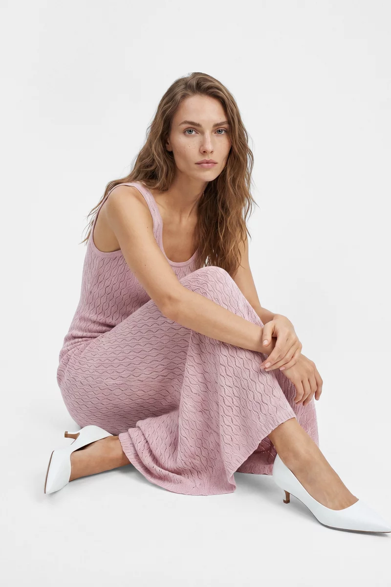 Розовое хлопковое платье макси с ажурной вязкой