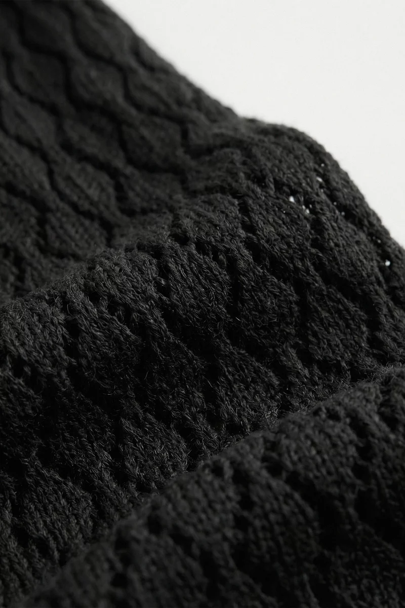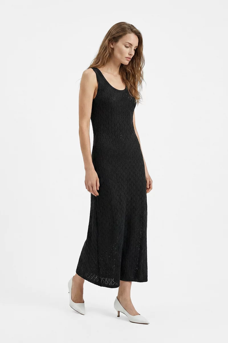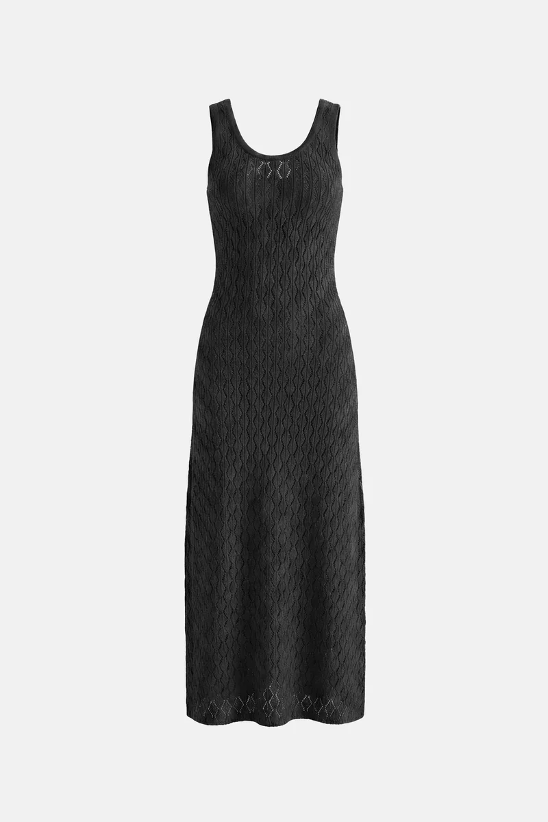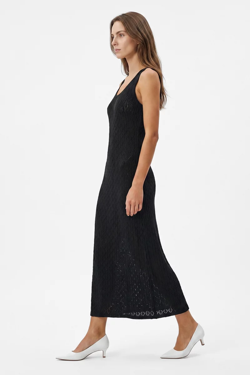 Черное хлопковое платье макси с ажурной вязкой