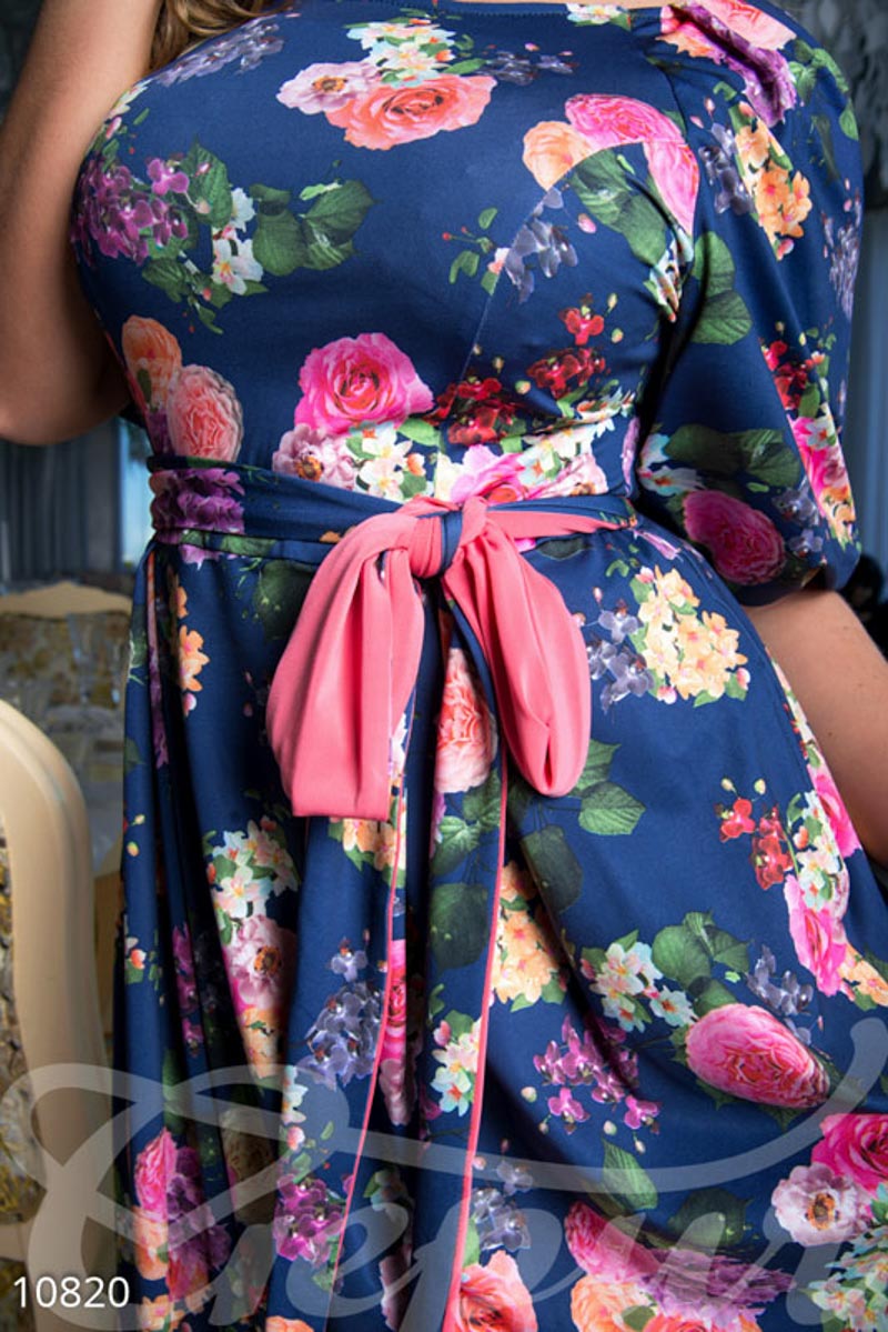 Платье в пол, с коротким рукавом, завышенной талией и юбкой во встречную складку, с принтовым цветочным рисунком. Рукав - реглан. На спине потайная молния. Идет с пояском. Очень нарядное платье для особых случаев