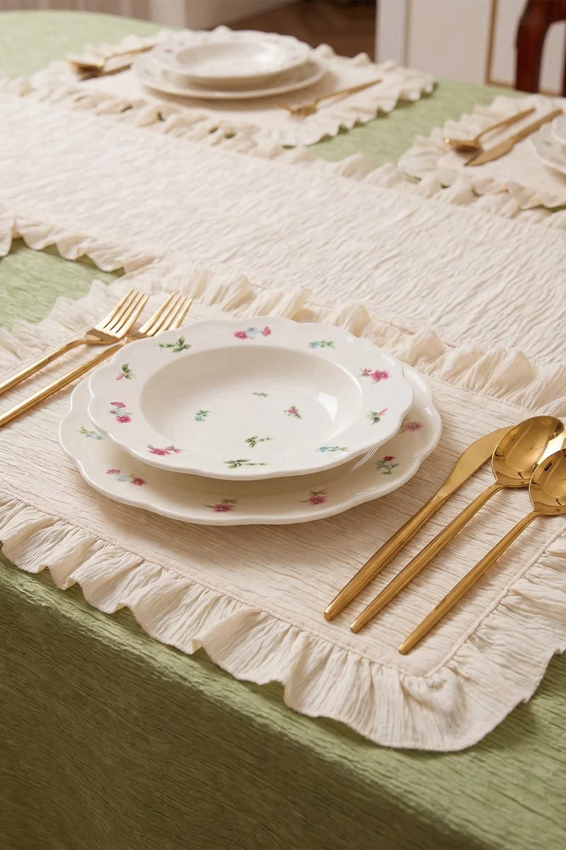 Текстильный прямоугольный плейсмат с рюшами – акцентная деталь, которая придаст эстетику и завершенность сервированию. Размер 49х39 см