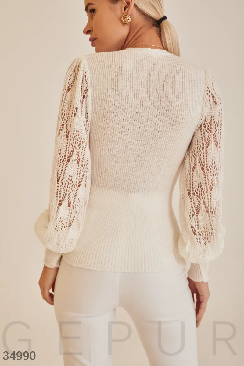 Получила полувер,рукава очень красивые на 46 размер в самый раз,на груди хорошо в меру открыто,сильно не распахивается ,но согласна с предыдущими отзывами шов по средине и края снизу могли бы быть аккуратнее.
