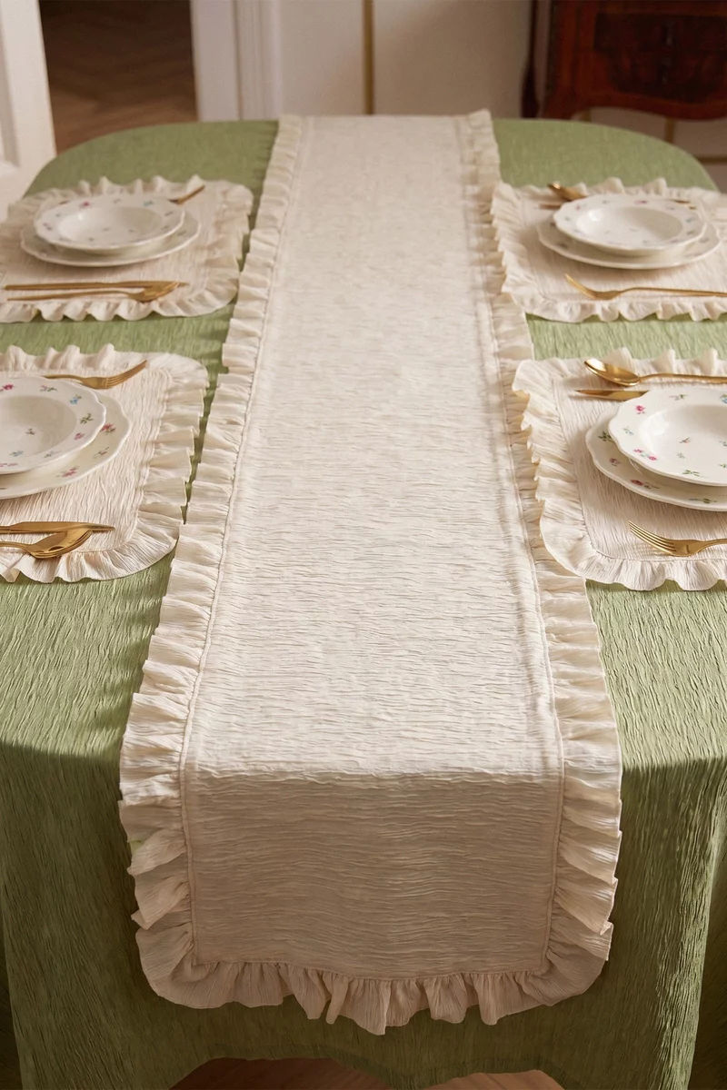 Текстильный ранер с рюшами – акцентная деталь, которая придаст эстетику и завершенность сервированию. Размер 150х40 см