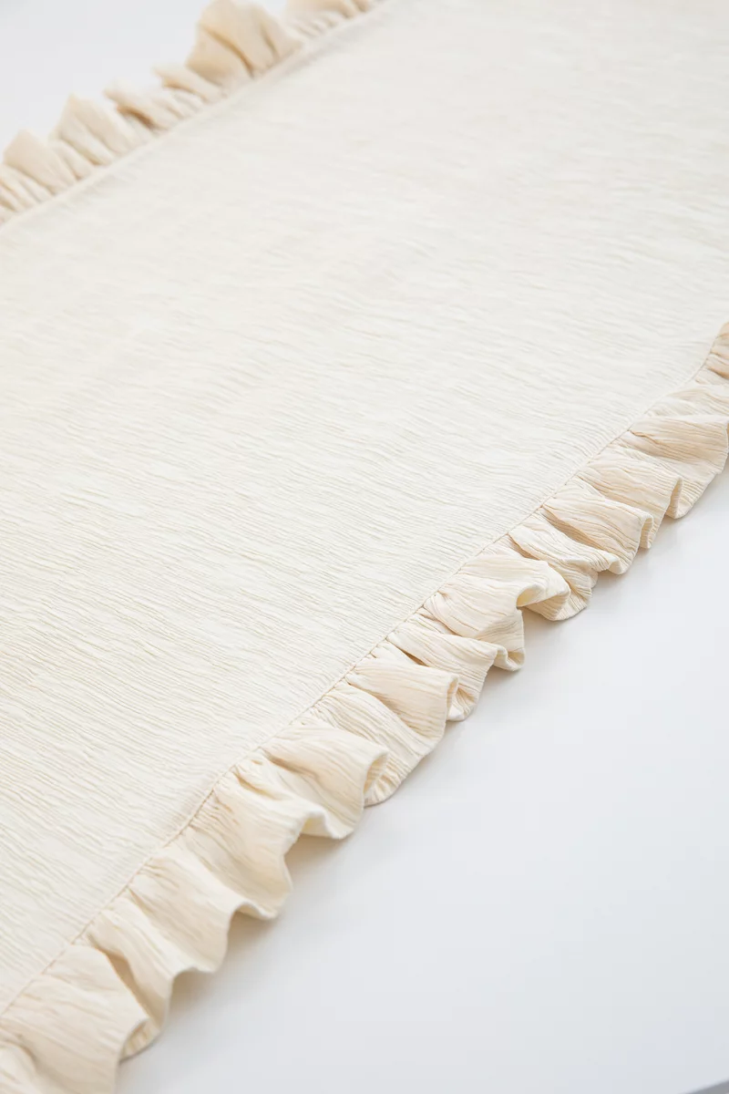 Молочный прямоугольный ранер с рюшами 150х40 см