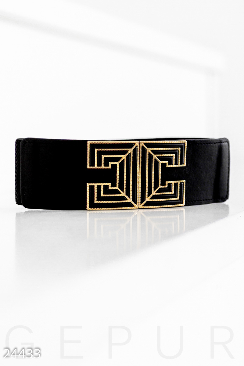 Широкий ремень с эластичной вставкой и квадратной пряжкой, выполненной из эко-кожи и металла.