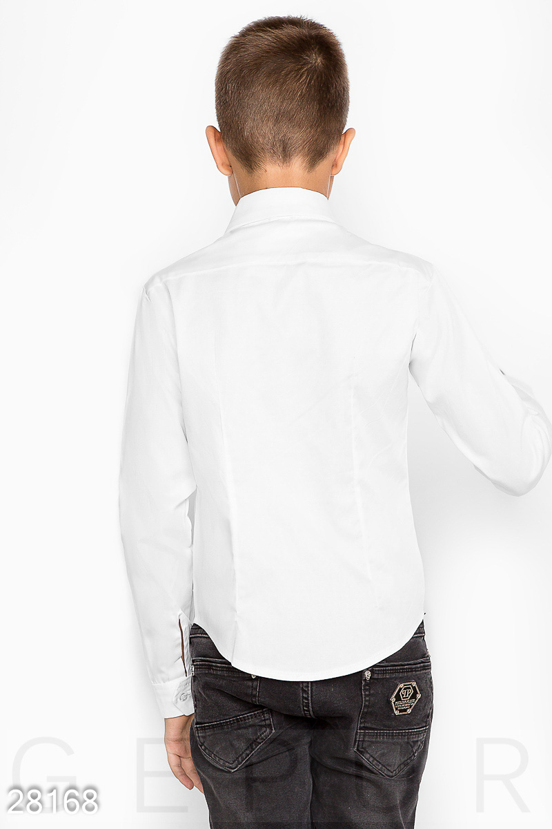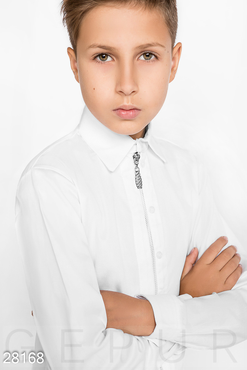 Школьная рубашка на молнии с закругленным подолом и классическим воротником с застежкой на пуговицу.