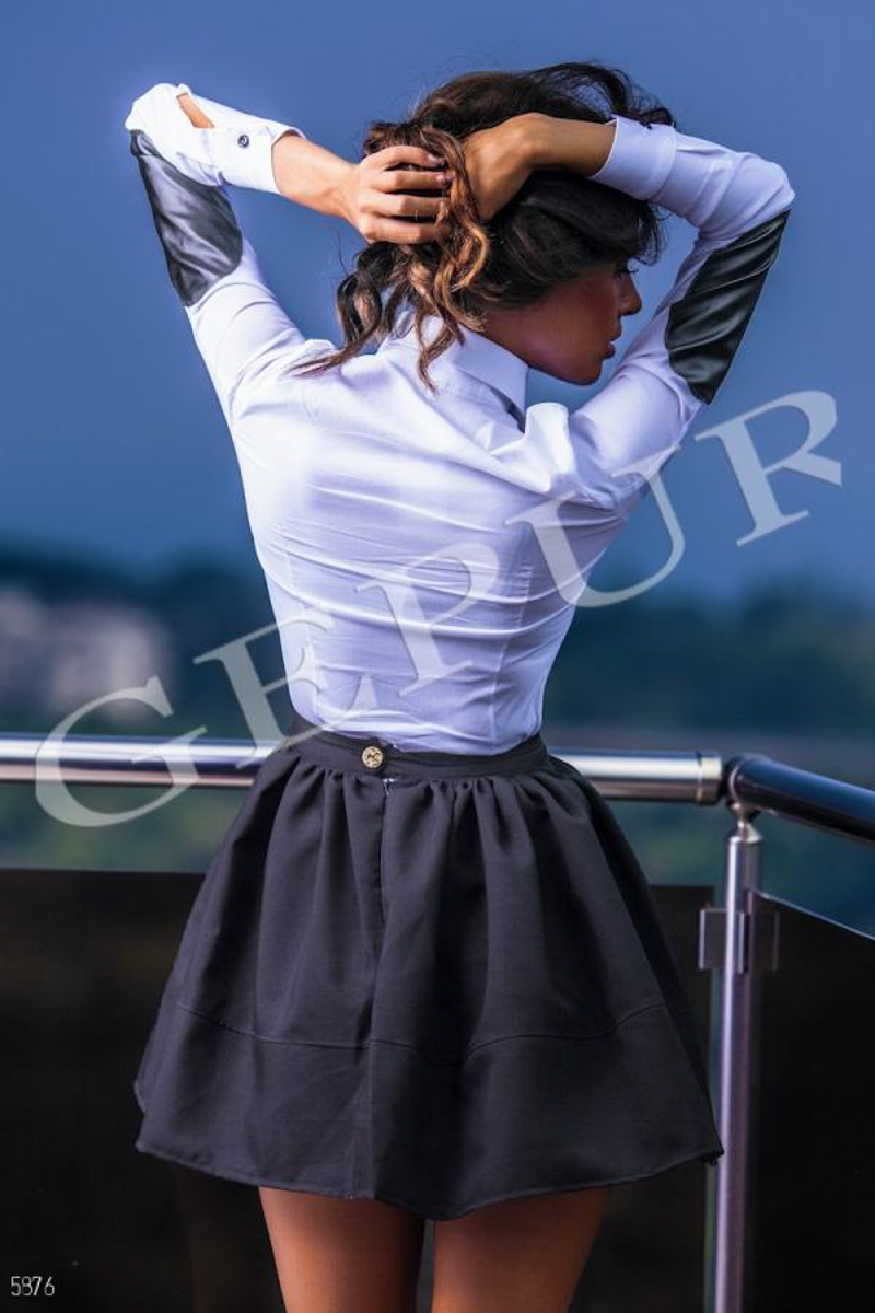 Клиентке рубашка очень понравилась! Заказывала мама своей дочке в школу, поэтому я считаю стразы не лишние, девочнкам это нравится )) размер М взяли на параметры грудь 90, талия 68, село очень хорошо. Материал тянется, кожаные вставки смотрятся...Детальнее