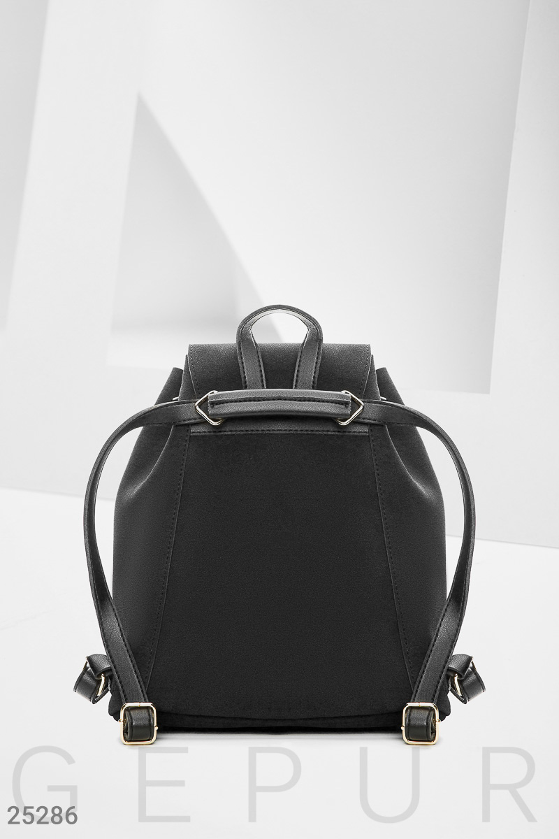 Стильный городской рюкзак из эко-кожи, с клапаном, боковым внутренним карманом, регулируемыми лямками и небольшим карманом на молнии. .
