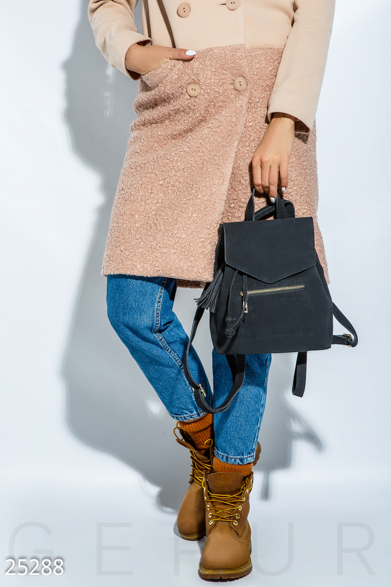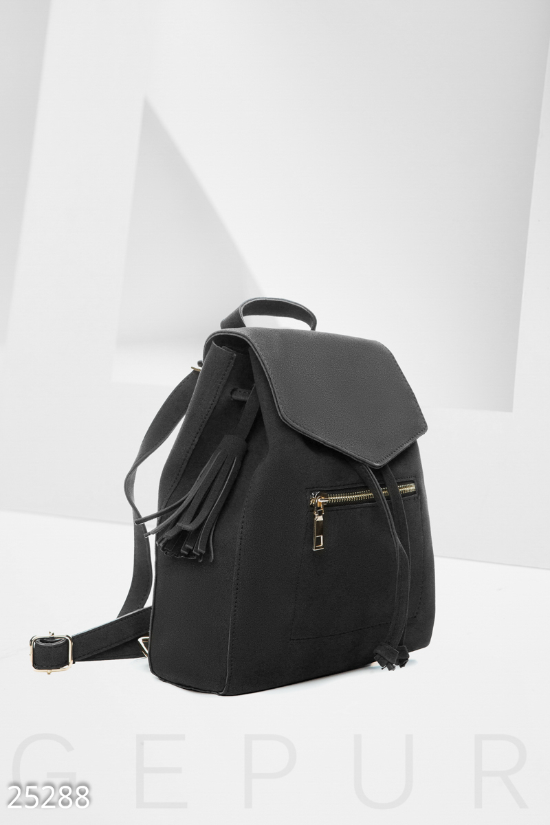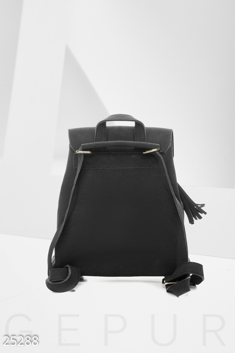 Компактный женский рюкзак из эко-кожи: с клапаном, одним небольшим отделением, дополнительным внутренним карманом, регулируемыми лямками и боковым карманом на молнии.
