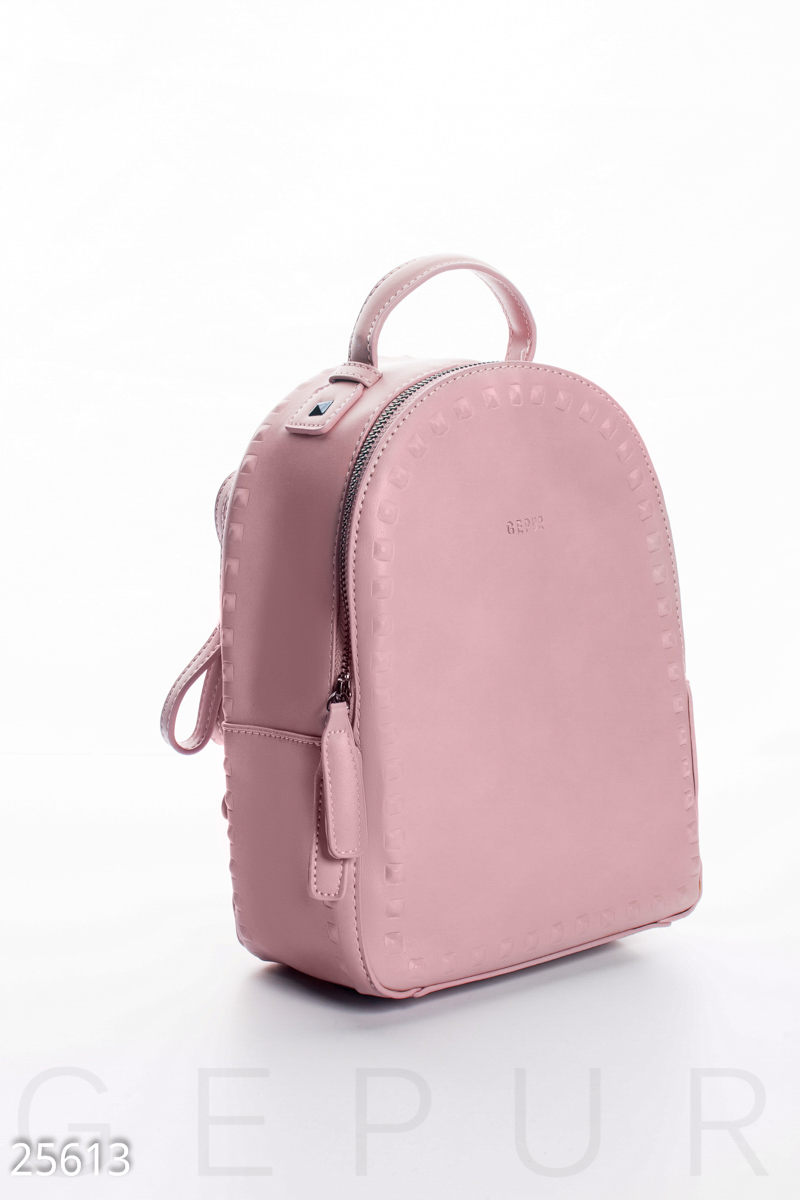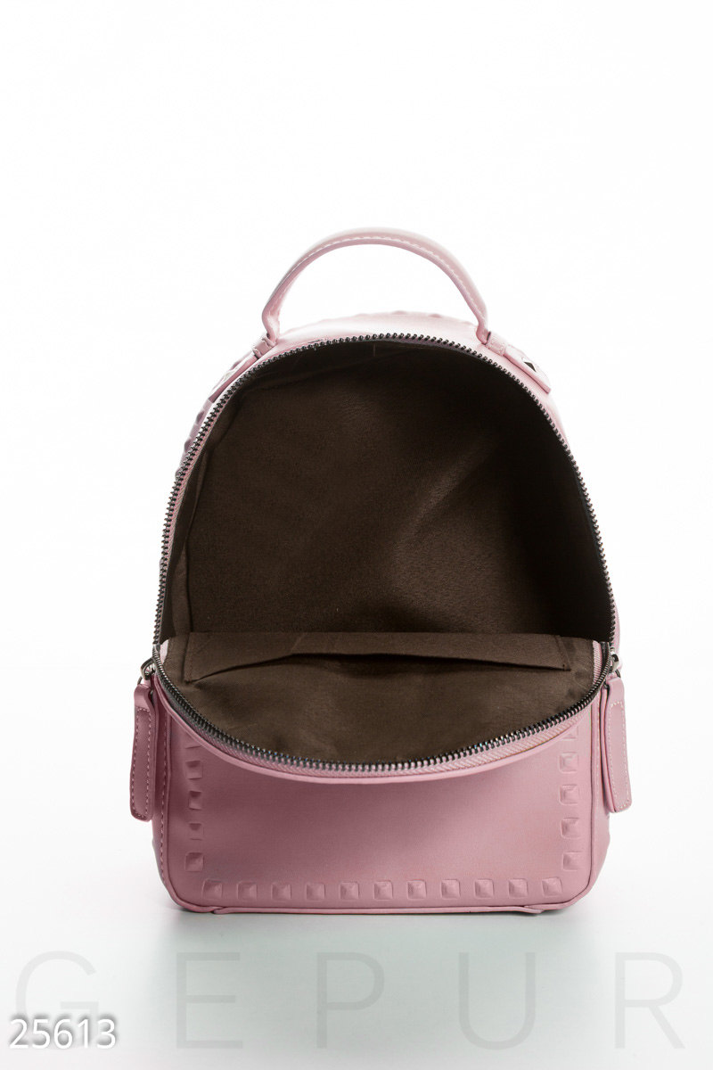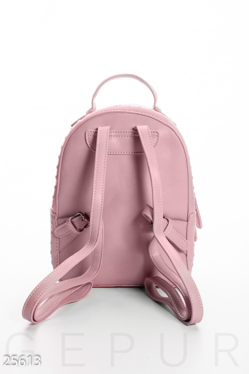Компактный женский рюкзак из эко-кожи с тиснением, одним отделением, небольшим внутренним карманом и узкими регулируемыми лямками.