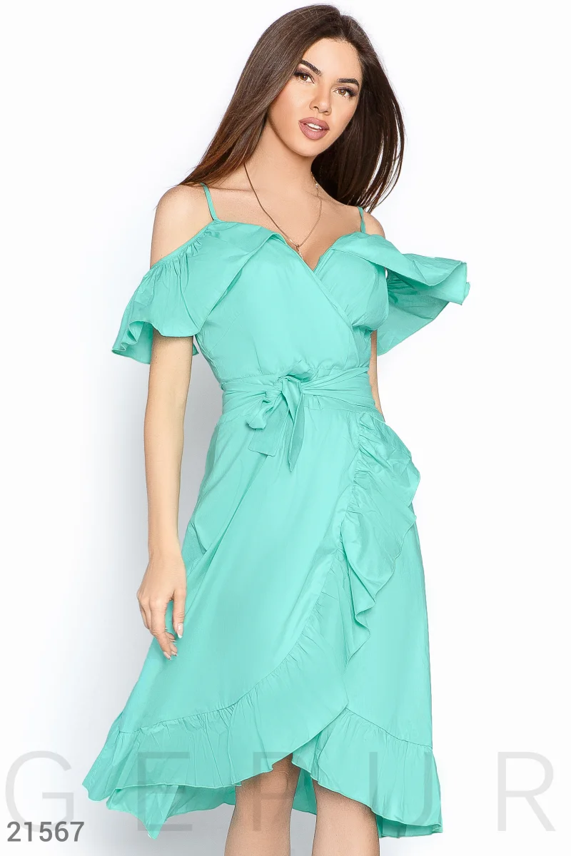 Яркий цвет "тиффани", натуральная приятная хлопковая ткань и качественный пошив. Брала для участия в фотосессии, а проносила все лето. Бретельки регулируются. Отличная вещь!