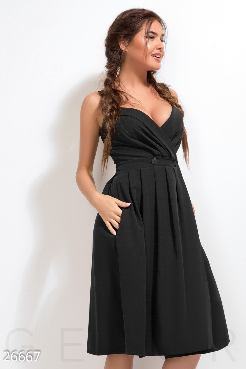Стильный сарафанчик, красиво подчеркивает грудь. Ткань немного тянется, очень плотная. Замеры в размере с: ОГ 78-86 см, ОТ 70 см.
