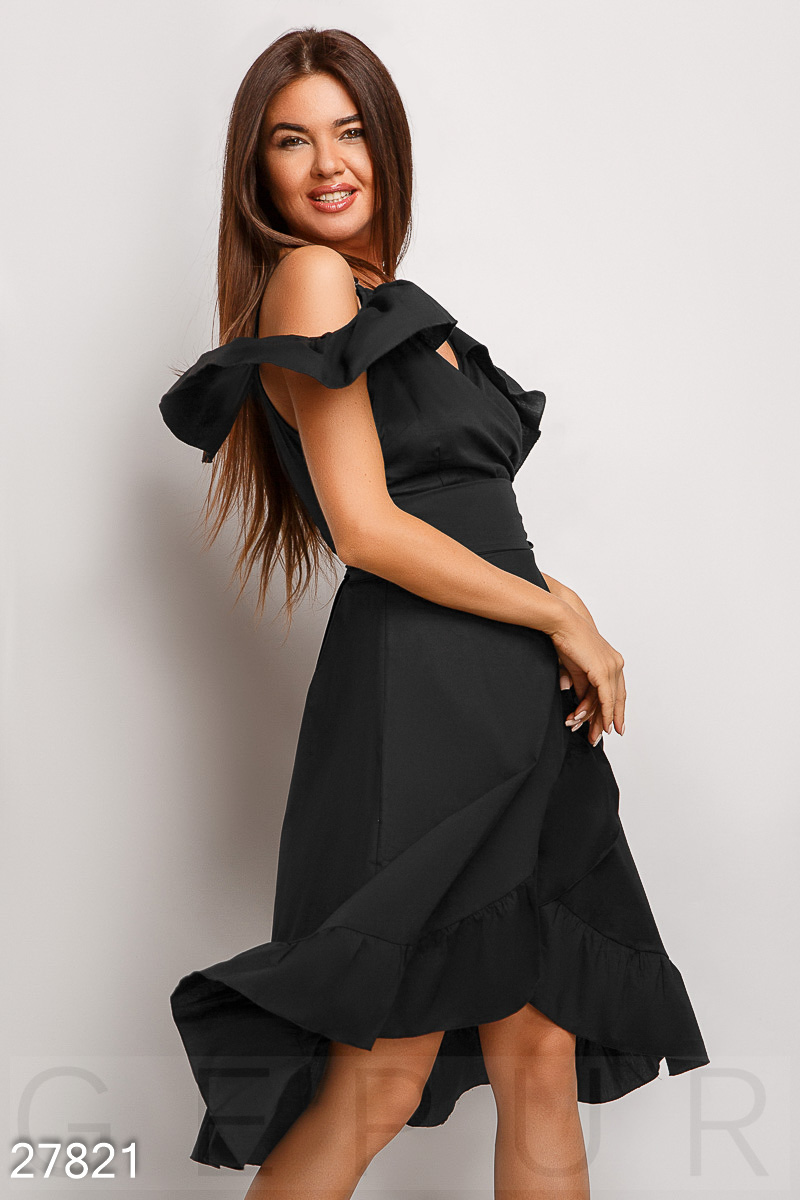 Платье соответствует размеру и цвету, но есть отличия от фота, передний основной волан идет не с права налево, а наоборот и воланы на плечам не так собраны как на фото, а более сводные и свисают ниже. Также когда застегиваешь потайную молнию сбоку,...Детальнее