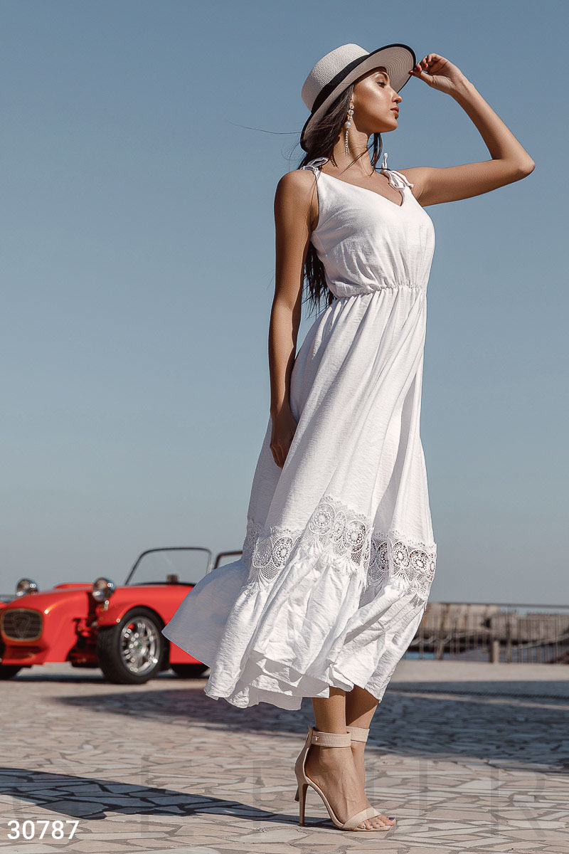 платье классное, на рост 178 длина чуть выше чем на моделе. Немного просвечивает, нужно бежевое белье. Так очень симпатичный. понравилось, что размер универсальный. подойдет и на 48 размер. Завязками на плечах можно регулировать высоту