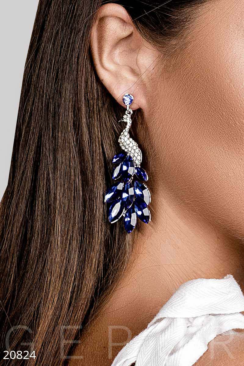 Уникальные вечерние серьги с камнями и подвеской, выполненной в форме Жар-птицы.