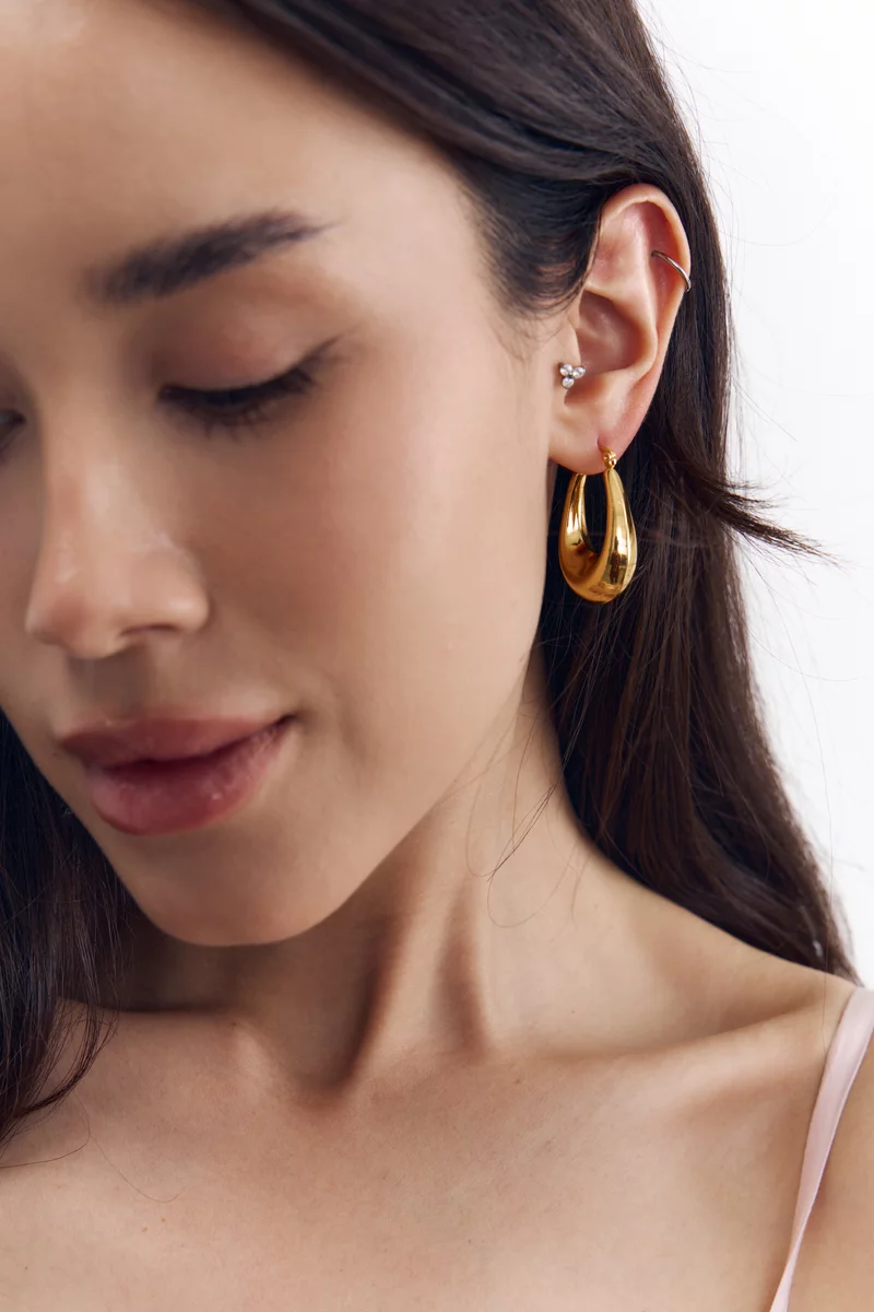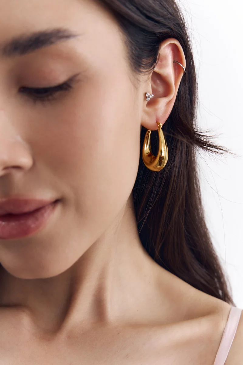 Стильные серьги скругленной формы. Эта пара универсальна и сочетается со многими модными стилями. Выполнены из качественного бижутерного сплава, который при правильном уходе не темнеет и долго служит. Покрытие не стирается, не окисляется и не оставляет следы на коже. Длина 3 см, ширина 2 см.
