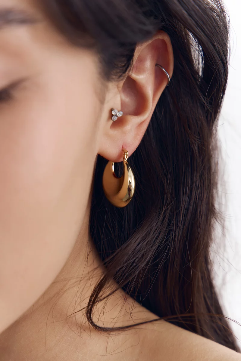 Стильные серьги скругленной формы. Эта пара универсальна и сочетается со многими модными стилями. Выполнены из качественного бижутерного сплава, который при правильном уходе не темнеет и долго служит. Покрытие не стирается, не окисляется и не оставляет следы на коже. Длина 2,5 см, ширина 2 см.