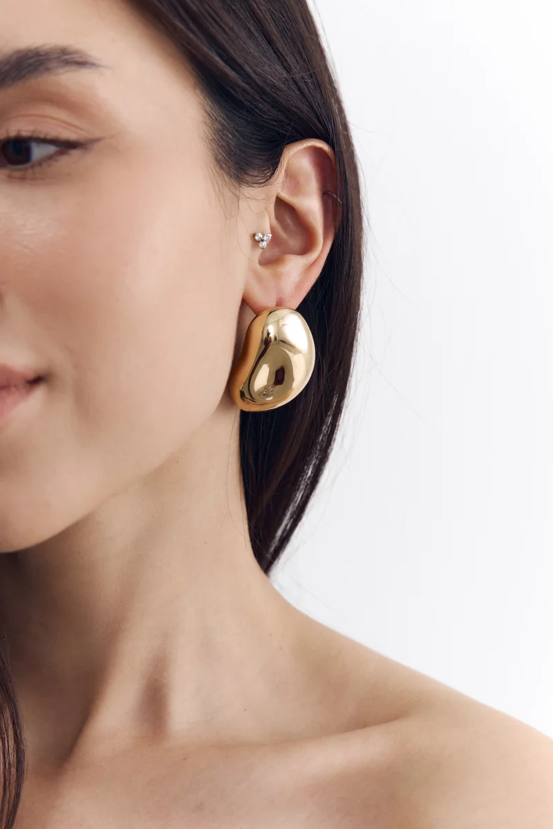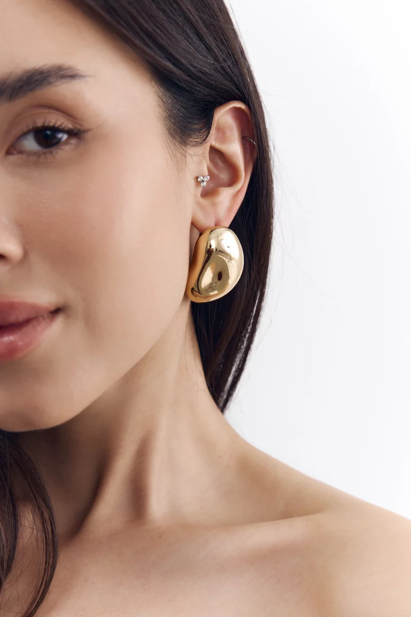 Эффектные серьги металлик на застежке-гвоздике – находка для поклонниц минималистических украшений. Эта пара универсальна и сочетается со многими модными стилями. Выполнены из качественного бижутерного сплава, который при правильном уходе не темнеет и долго служит. Покрытие не стирается, не окисляется и не оставляет следы на коже. Ширина 2,5 см, длина 3,5 см