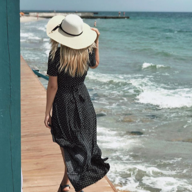 Шляпа классная! Качественная, широкие поля красиво обрамляют лицо. Вокруг повязана черная тонкая бархатная лента с жемчужинами. Под платье в горох просто бомба. Все мужчины в доме одобрили выбор. Рекомендую на лето.