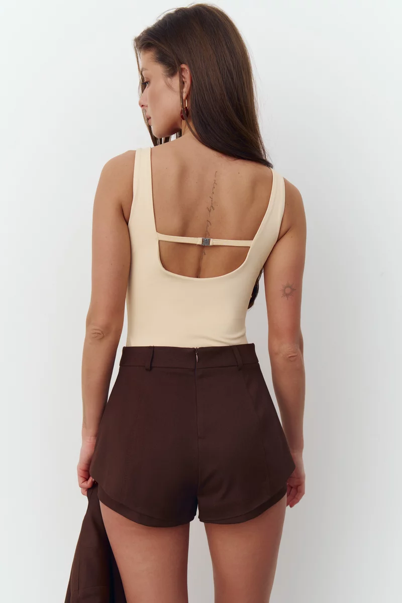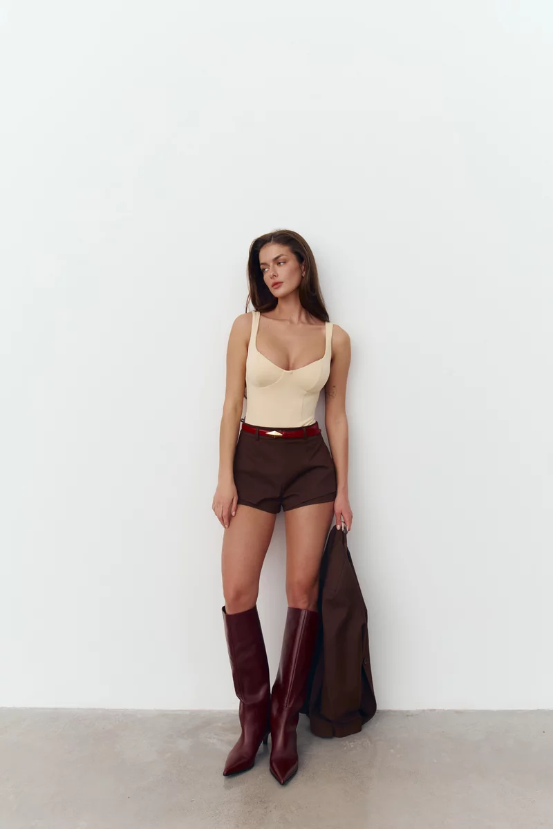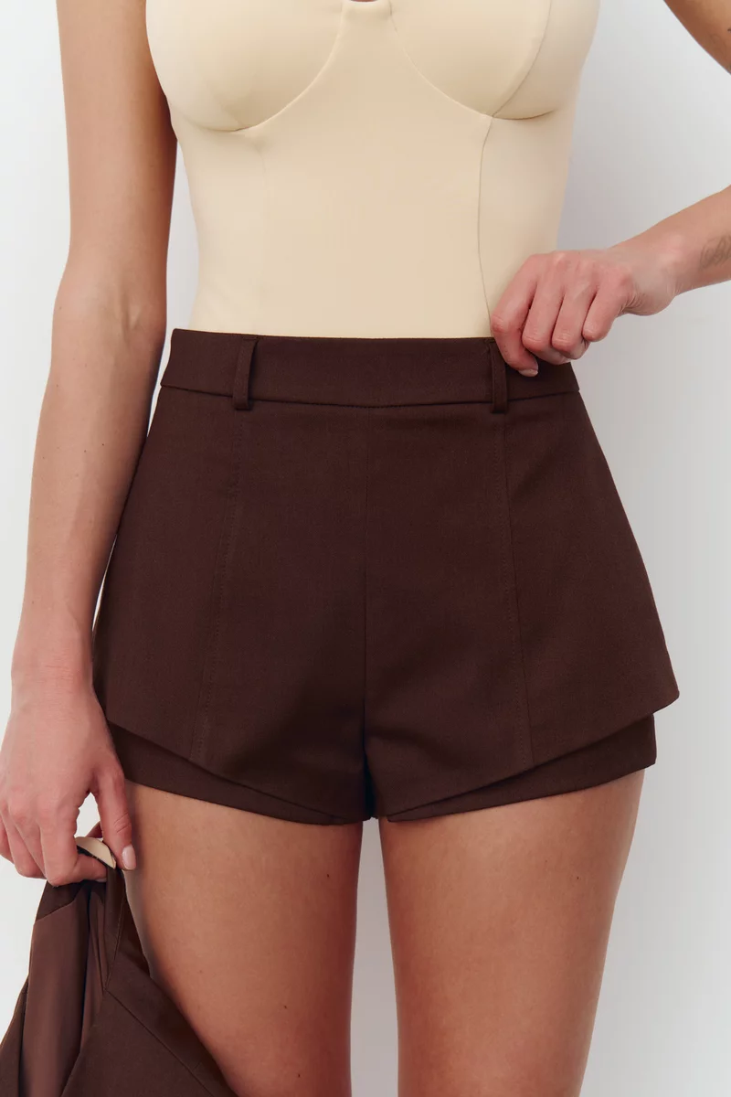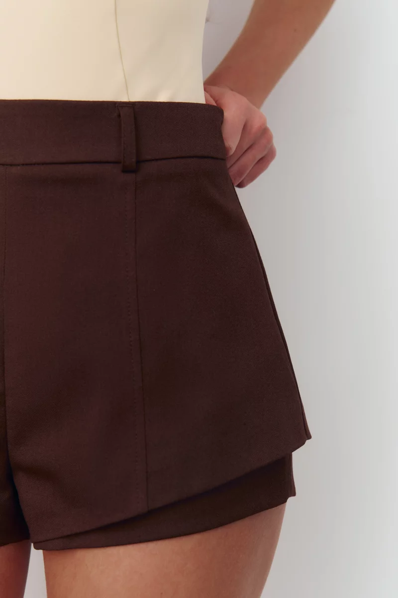 Короткие шорты из костюмной ткани в шоколадном оттенке
